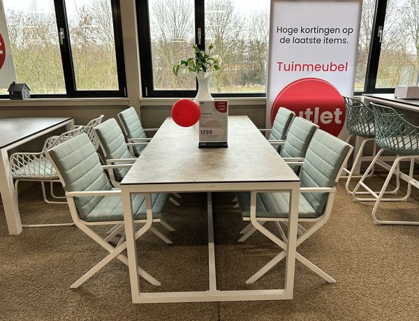 Stijlvolle loungesets, comfortabele tuinstoelen, parasols, tuinaccessoires, unieke showmodellen en meer – allemaal direct beschikbaar voor een scherpe prijs. Op = op.