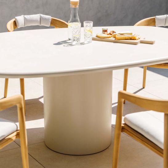 Stonex is weerbestendig, maar gebruik in de winter of bij langdurige regen een beschermhoes of zet het onder een overkapping. Verplaats voorwerpen regelmatig om kringen te voorkomen.