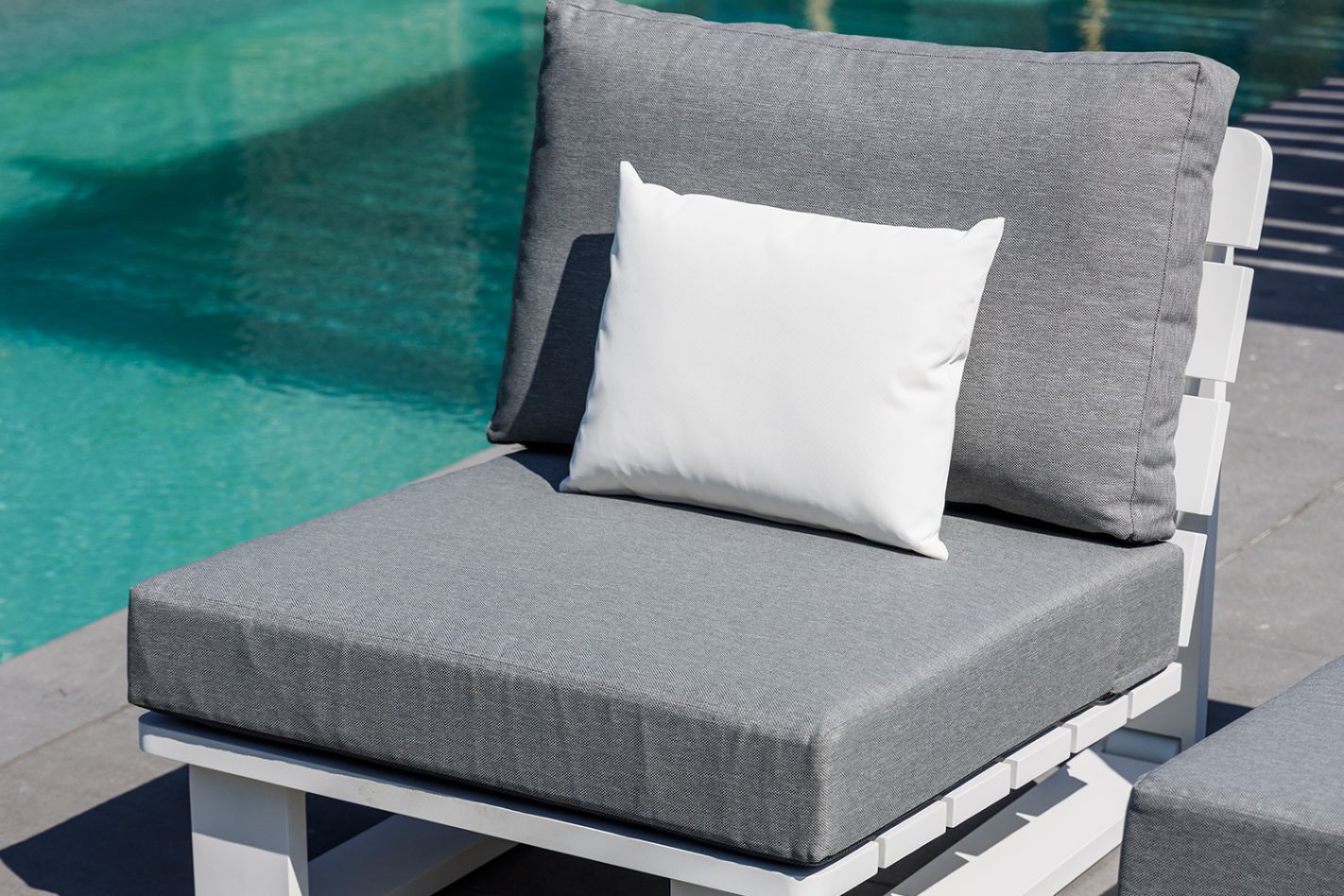 All-weather Comforma is onze meest zachte en gladde stof. Deze kussens voelen als een binnenkussen en komen prachtig tot hun recht onder een overkapping.