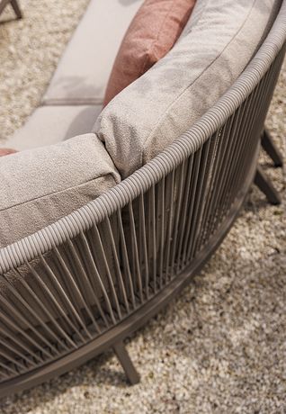 Je vindt deze luxe textuur onder andere terug op de kussens van de Moma loungeset en Lima loungestoel. Zo geniet je van een high-end uitstraling zonder dat je bij elk wolkje naar buiten hoeft te rennen om de kussens te redden.