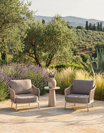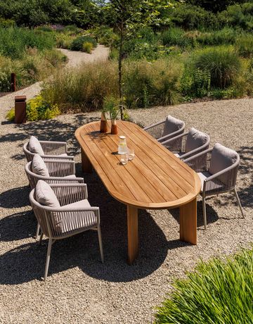 De Salvador past perfect bij de laatste tuintrend waarbij rechte hoeken plaatsmaken voor zachte, afgeronde vormen. Het is een set die rust uitstraalt, ideaal voor wie van een minimalistisch maar warm exterieur houdt. De tafels in deze serie zijn voorzien van een blad van sintered stone, wat niet alleen luxe oogt maar ook extreem krasbestendig en makkelijk schoon te houden is.