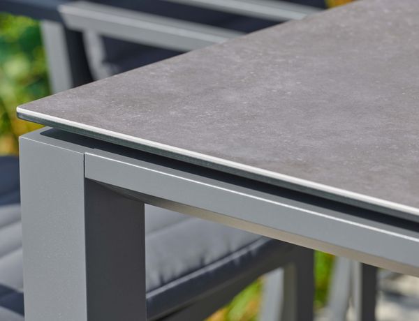 De bartafel met keramisch blad was een bewuste keuze. Het is elegant en kan tegen een stootje. Na een avond vol gezelligheid maak je het eenvoudig schoon met een doekje, en het ziet er weer als nieuw uit.
