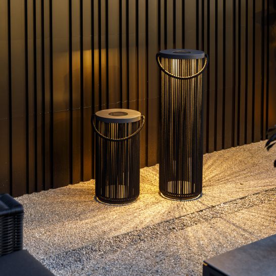 In een Japandi-tuin is de aankleding subtiel en functioneel. Kies voor grote, zwarte plantenbakken en textiel in zachte aardetinten om de balans te bewaren. De Orion tuinlantaarn is hierbij een onmisbare eyecatcher; stijlvol, oplaadbaar én werkend op zonne-energie. Maak het geheel af met een stoer Jupiter dienblad of de minimalistische Troya bijzettafel in lava aluminium of warm teakhout voor de perfecte rustgevende look.