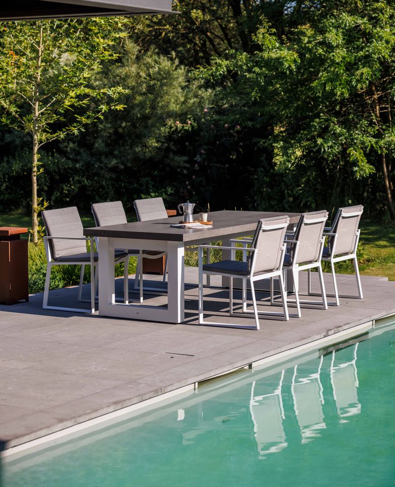 In een minimalistische tuin geldt een gouden regel: kies minder, maar kies bewust. In plaats van je terras vol te zetten met losse elementen, ga je voor één of twee krachtige statements. Kies voor meubels met een strak, tijdloos ontwerp en rechte lijnen.