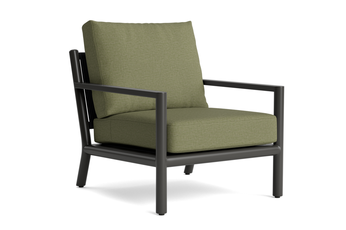 Het aluminium frame vormt een sterke basis, terwijl het verticale RuCore+ touw de stoel een verfijnde uitstraling geeft. RuCore+ is een All-weather Textilene Textileen touw met een rubberen kern en een stevige geweven buitenlaag, waardoor het zacht aanvoelt en snel droogt. Onder het kussen ligt een zitting die subtiel meeveert en extra ondersteuning biedt, ook tijdens langere zitmomenten.
