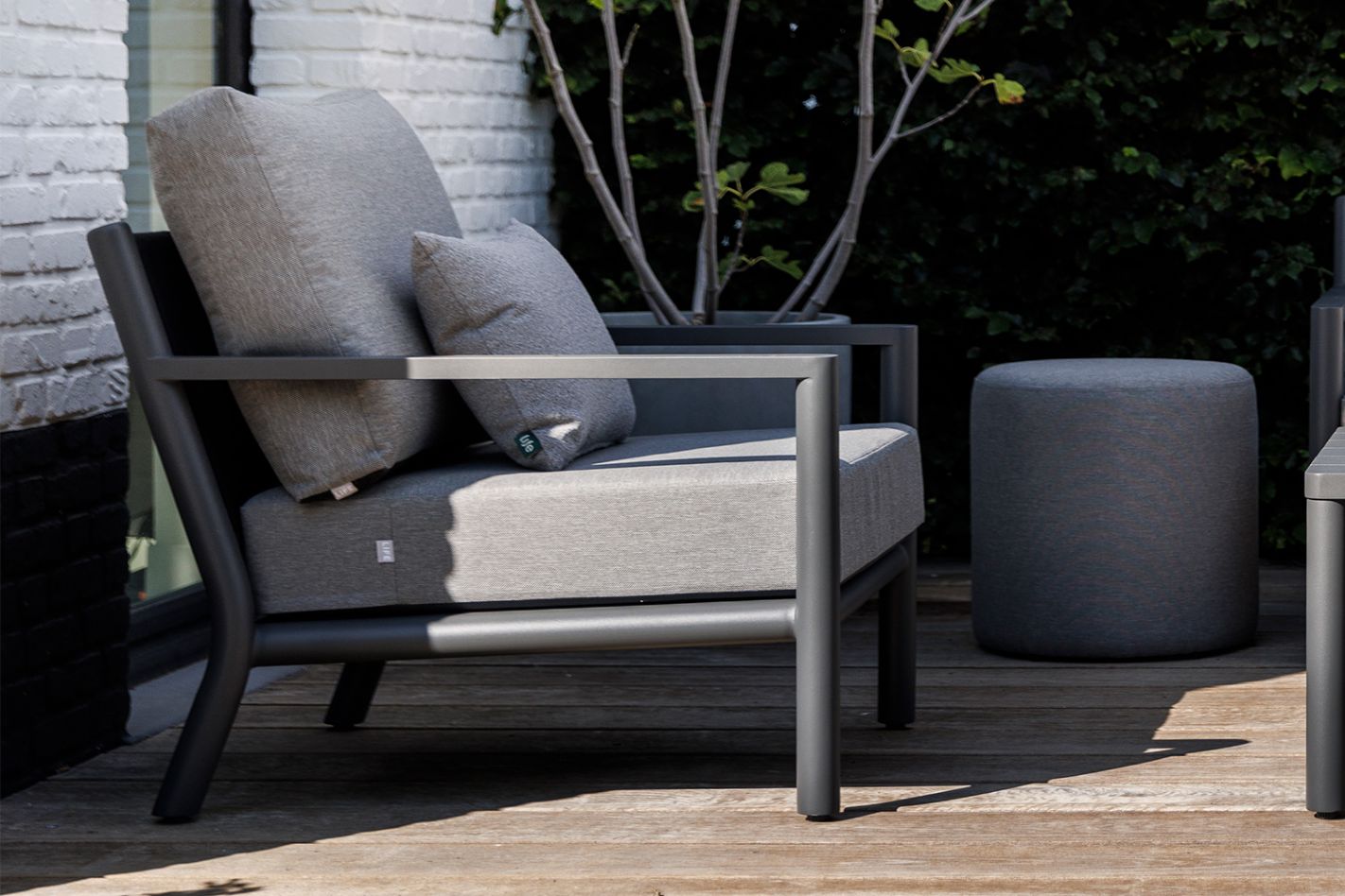 De Nuba loungestoel brengt een strakke en rustige uitstraling naar je buitenruimte. De iets hogere, actieve zit maakt de stoel ideaal voor wie ontspannen wil zitten maar toch graag rechtop blijft. De vormgeving voelt overzichtelijk en modern, waardoor de stoel goed past in verschillende opstellingen.
