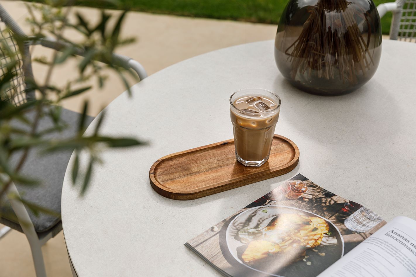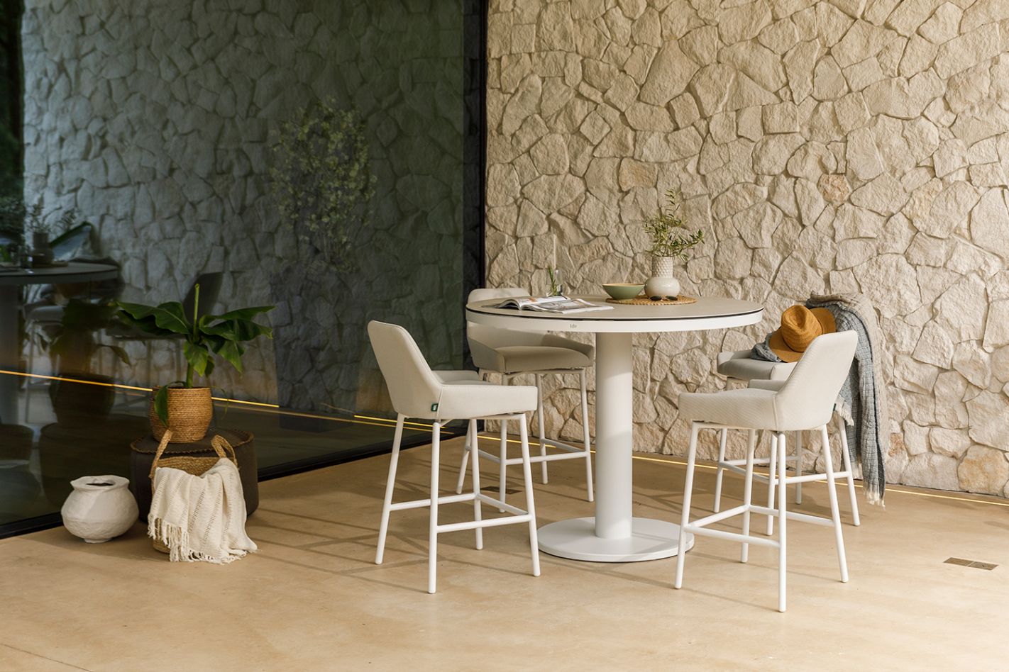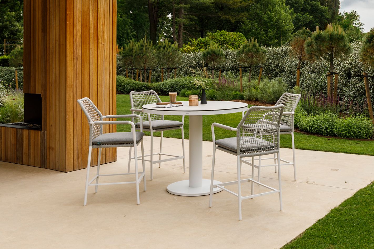 Het aluminium frame blijft mooi in alle seizoenen en vraagt weinig onderhoud. Je kunt kiezen uit een blad van warm teak of onderhoudsvriendelijk keramiek, afhankelijk van de sfeer die je wilt creëren. Zo vormt de Oslo bartafel een duurzame, stijlvolle en praktische plek waar je elke dag opnieuw kunt genieten van het buitenleven.