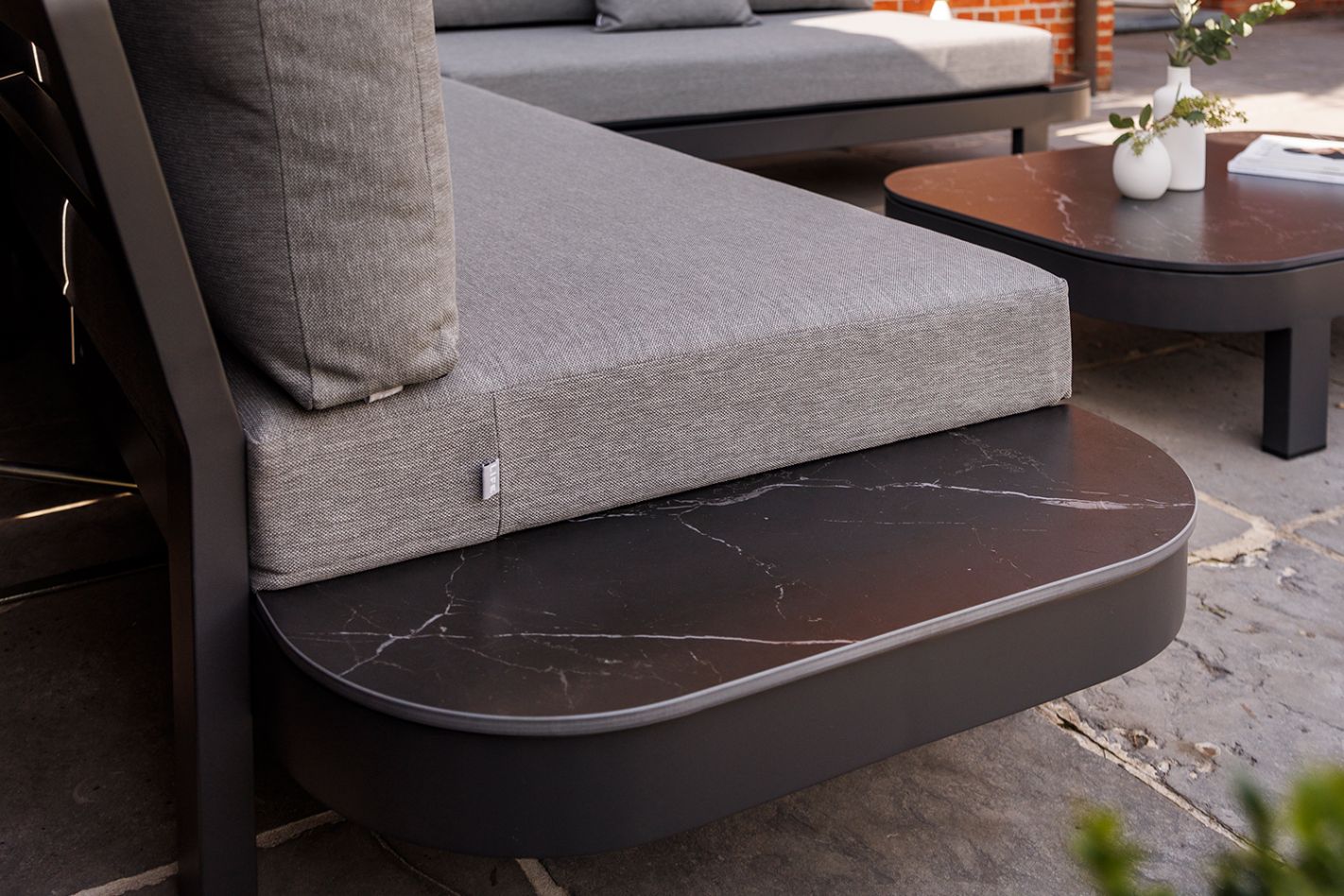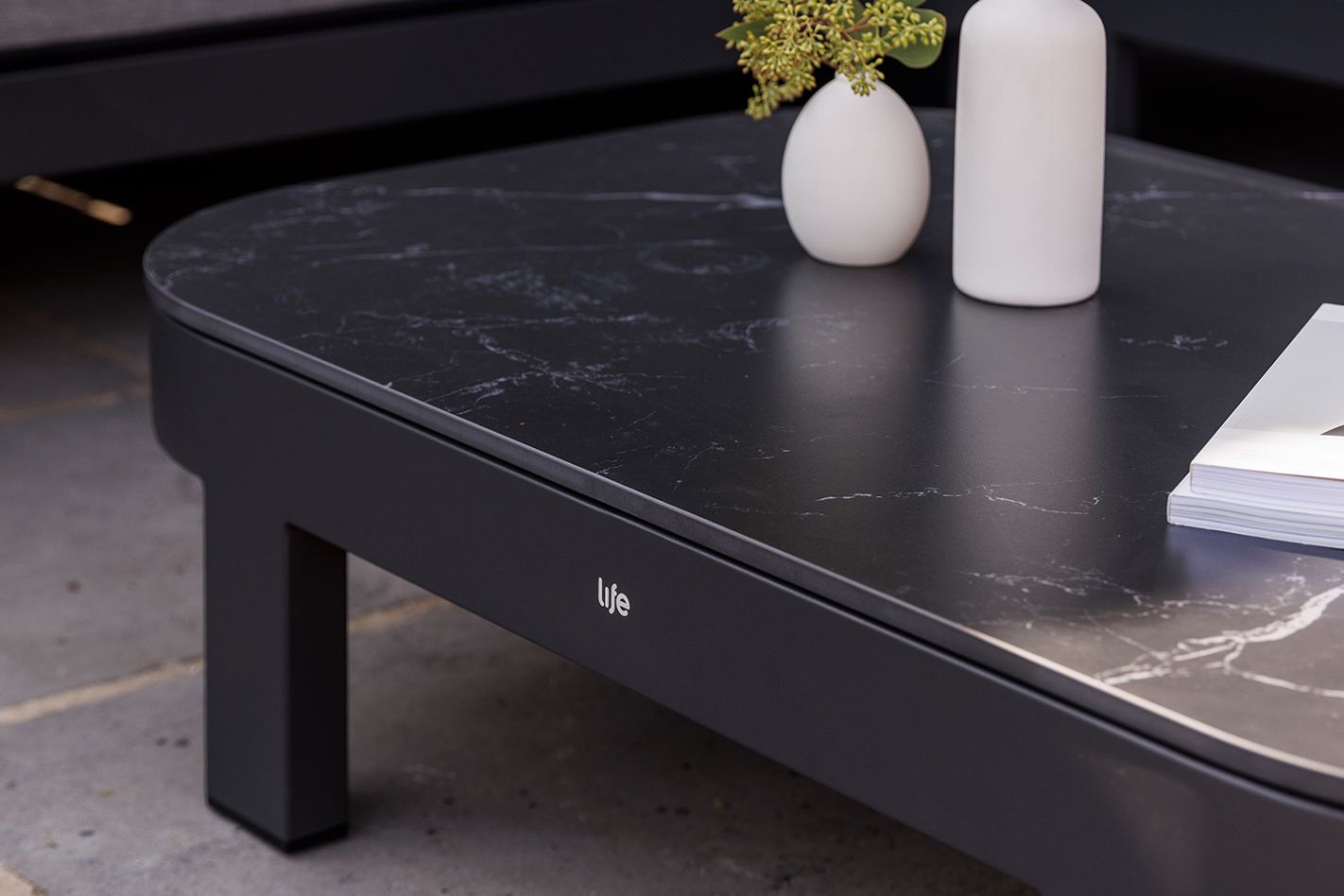 De tafels binnen deze serie zijn uitgevoerd met een sintered stone blad, dat zijn uitstraling behoudt en eenvoudig schoon te houden is. Zo vormt de Salvador loungeset een moderne, duurzame en comfortabele plek om dagelijks van het buitenleven te genieten.