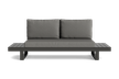 Het Soho ligbed heeft een aluminium frame in lava, wit of beige, afgewerkt met herkenbare teakhouten details. De sling zitting van textileen biedt comfort en droogt snel dankzij minuscule gaatjes in het materiaal. De rugleuning is verstelbaar in vijf standen, van rechtop tot plat. Onder het bed zit een uitschuifbaar tafeltje – ideaal voor een boek of drankje.