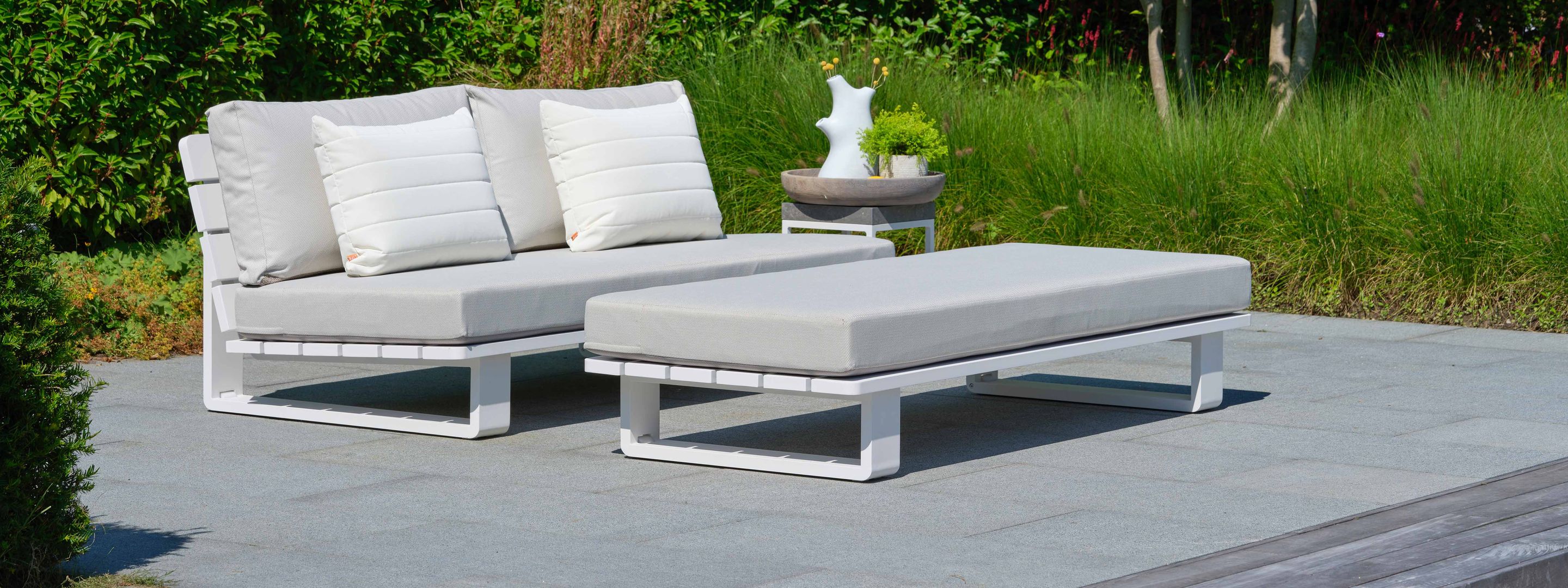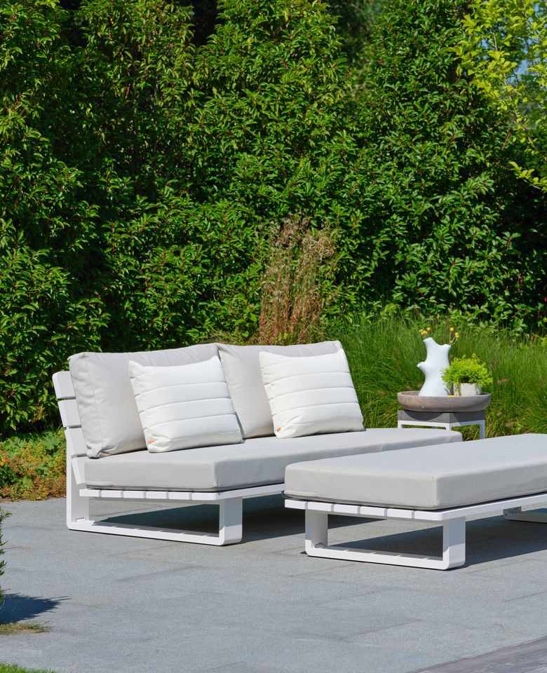 Minimalistische tuinstijl met Timber loungeset in wit aluminium