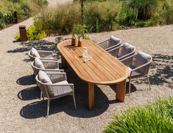 Dabei geht es nicht mehr nur um die Form des Gartenmƶbels selbst, sondern um raffinierte Details, die Charakter und Persƶnlichkeit verleihen. Runde Rohre und Flechtwerk sorgen für eine natürliche Ausstrahlung und schaffen eine behagliche AtmosphƤre. Schauen Sie sich zum Beispiel die fliessenden Konturen der Olympus Lounge oder des Gartenstuhls Malaga an. Auch Teakholz passt perfekt zu diesem Trend – ein schƶnes Beispiel ist der runde Tisch Andalucia. Das Ergebnis? Ein Aussenbereich, der freundlich, harmonisch und absolut zeitgemƤss wirkt.