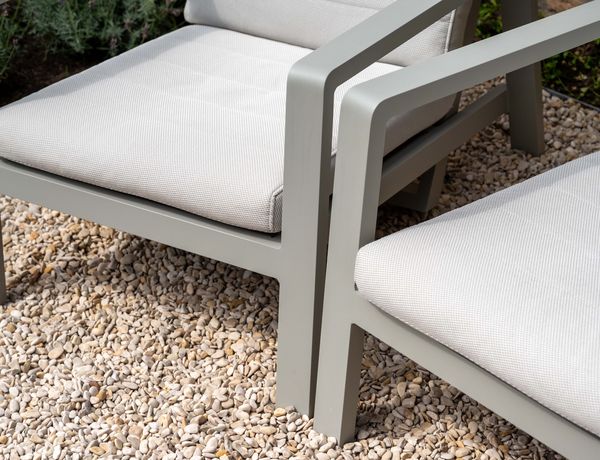 Nicht nur die Farbe war wichtig – auch die Materialien wurden mit Sorgfalt ausgewƤhlt: Aluminiumgestelle, eine Tischplatte aus Keramik und pflegeleichte Kissen.