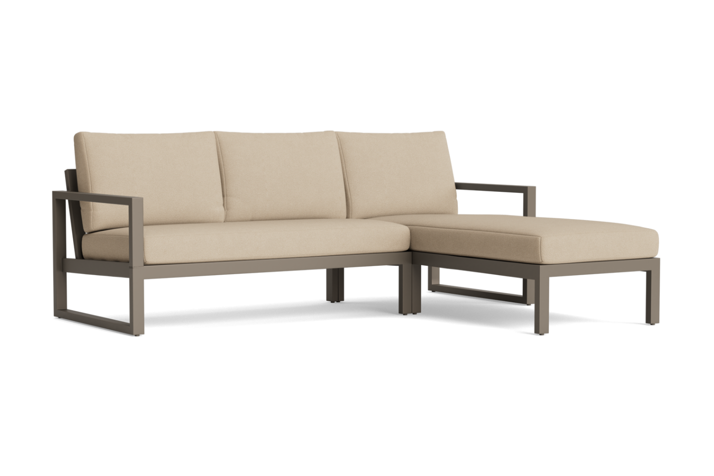 Luftige Lounge-Garnitur mit elegantem Aluminiumrahmen und flexibler Sitzfläche. Ideal für entspanntes Essen im Lounge-Stil. Mit All-weather Soltex-Kissen und vielseitigen Einsatzmöglichkeiten.
