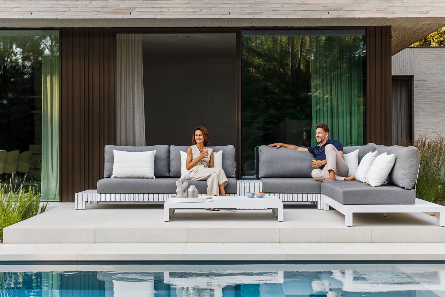 Das Lounge-Set Zagros wurde speziell als ideales Set für den Poolbereich entwickelt. Sein längliches und geräumiges Design fügt sich perfekt ins Wasser ein und ermöglicht Ihnen Entspannung in einem stilvollen und modernen Ambiente. Zagros ist exklusiv in Weiß erhältlich, was nicht nur für einen frischen Look sorgt, sondern auch perfekt zu einem luxuriösen Poolambiente passt.