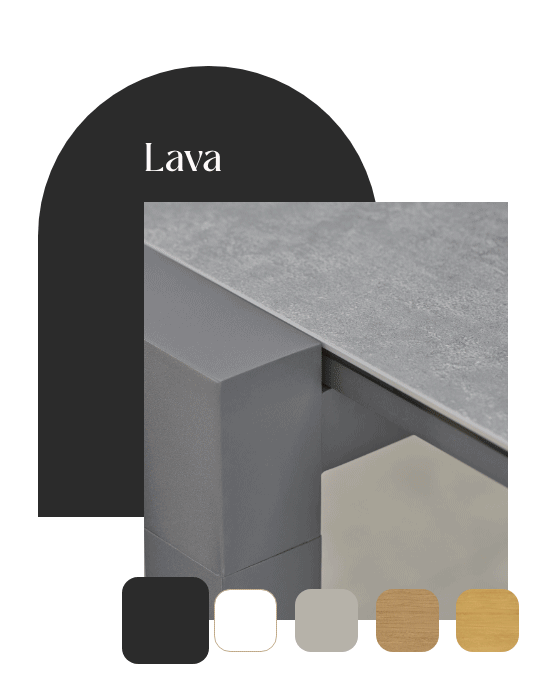 VervollstƤndigen Sie Ihr Set mit unseren hochwertigen Tischplatten aus Stonex, Sintered Stone, Keramik oder Teakholz – jede mit ihren eigenen Eigenschaften und Vorteilen.