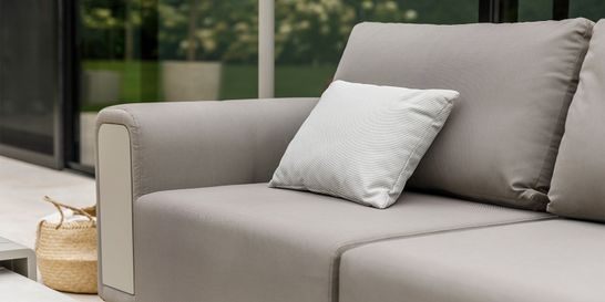 All-weather Comforma fühlt sich luxuriƶs und weich an – mit der Optik eines Stoffes für den Innenbereich. Ideal für stilvolles Loungen im Freien.