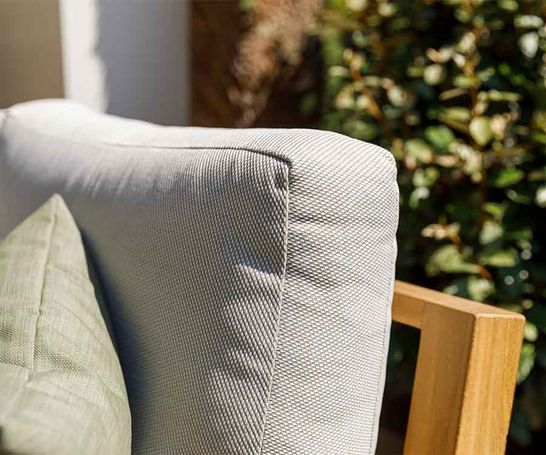 Kissen aus All-weather Soltex kƶnnen von MƤrz bis Oktober im Freien bleiben – so sitzen Sie bei den ersten Sonnenstrahlen sofort bequem.