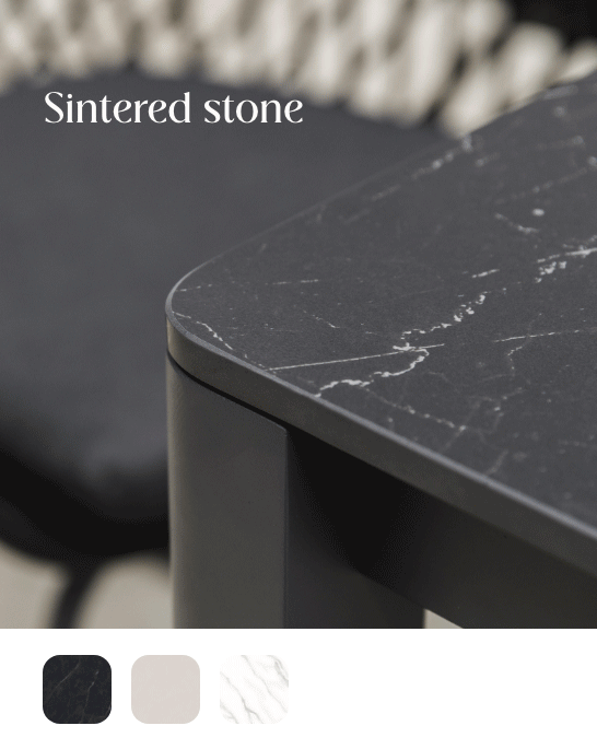 VervollstƤndige dein Set mit unseren hochwertigen Tischplatten aus Stonex, Sinterstein, Keramik oder Teakholz – jedes Material mit seinen eigenen einzigartigen Eigenschaften und Vorteilen.