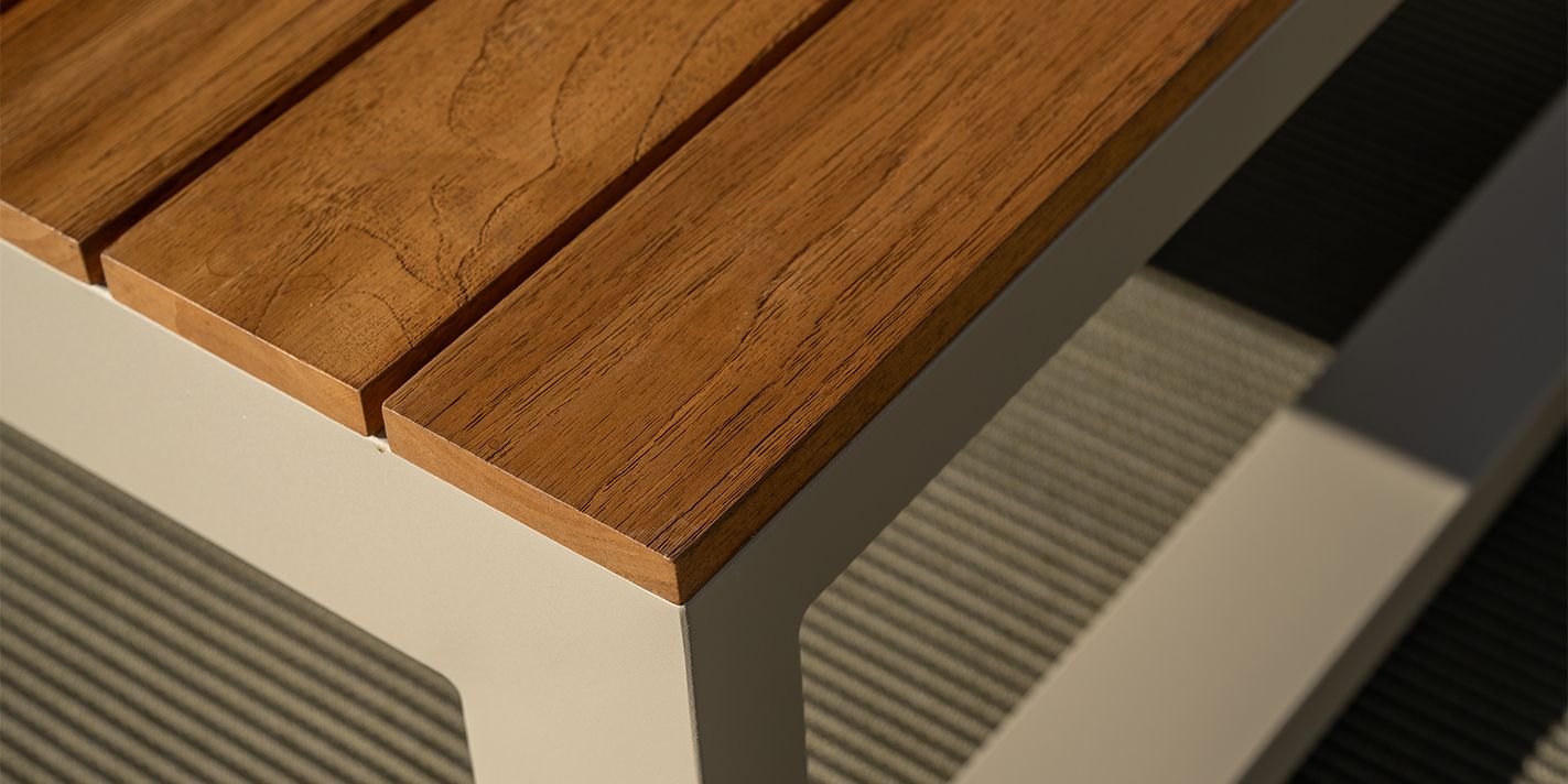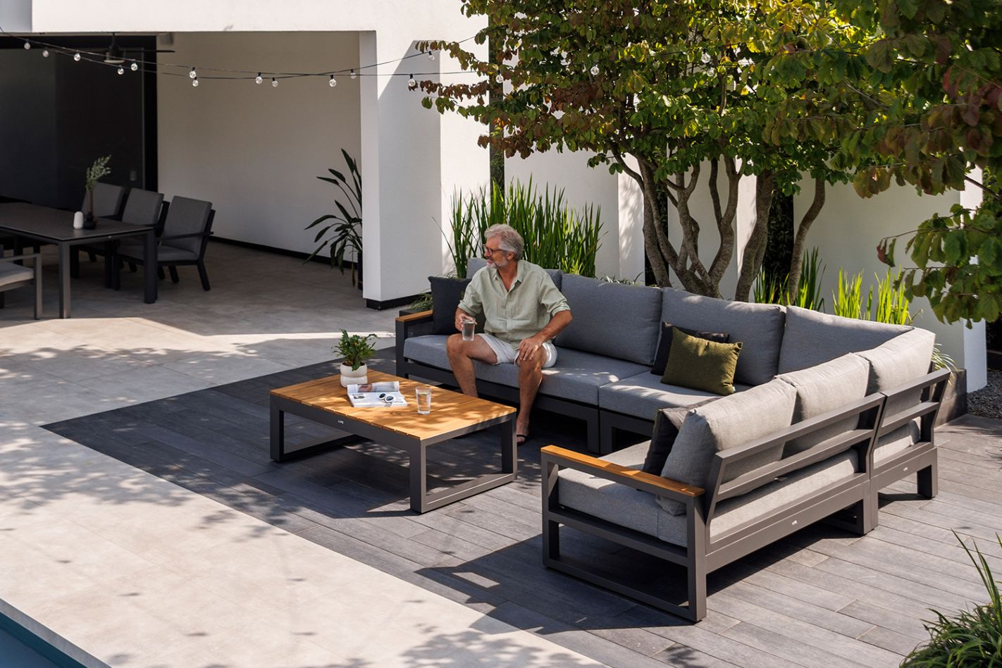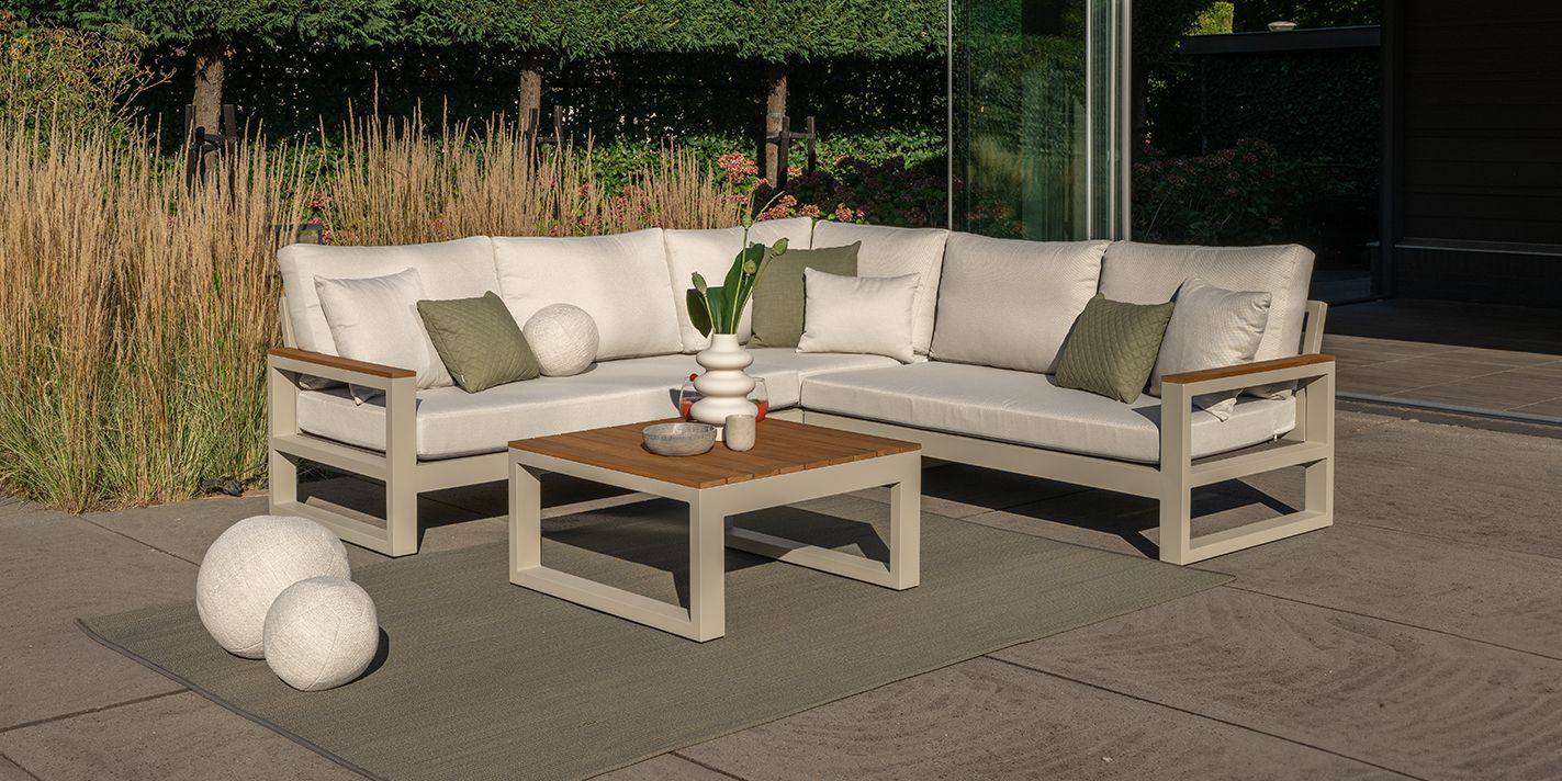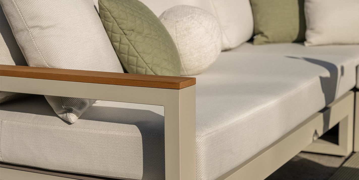 The teak slats on the armrests and tables not only give the set a warm appearance but also provide extra comfort. The aluminum frame is available in three stylish colors: lava, beige, or white, while the teak side tables you can choose are finished in a robust color. This combination of materials and colors creates an elegant and durable lounge set that perfectly complements various outdoor styles. Because the Soho is available in all our frame colors, it will always complement your garden style.