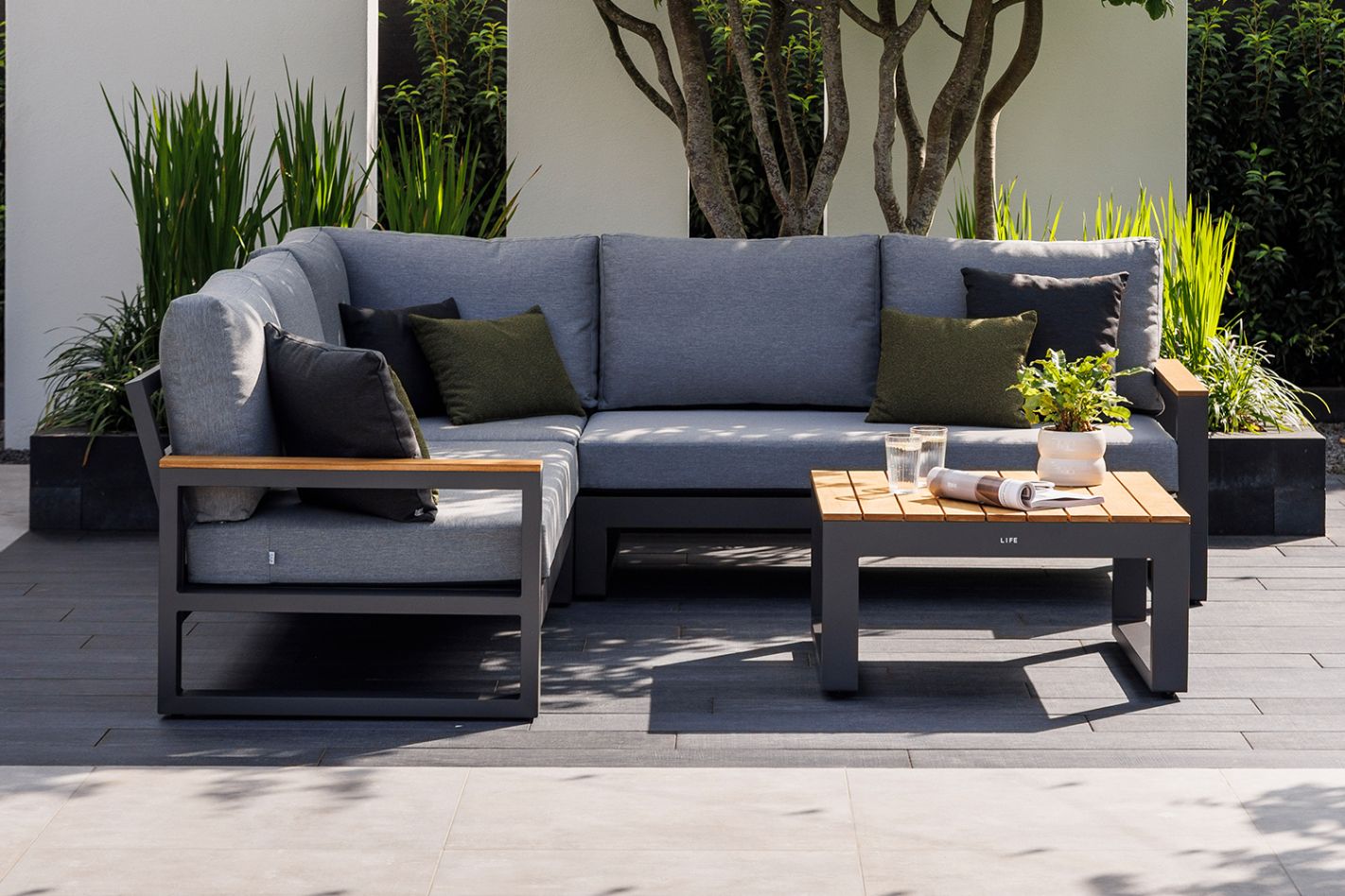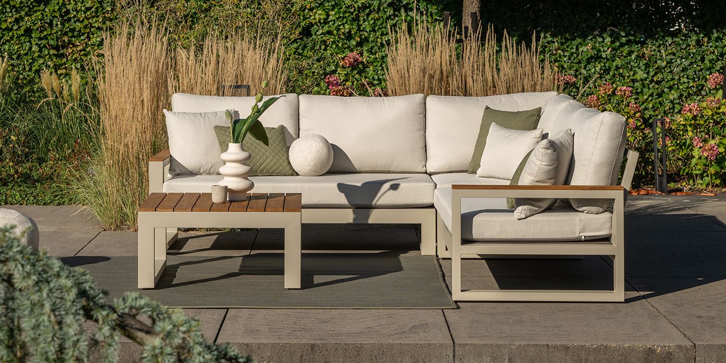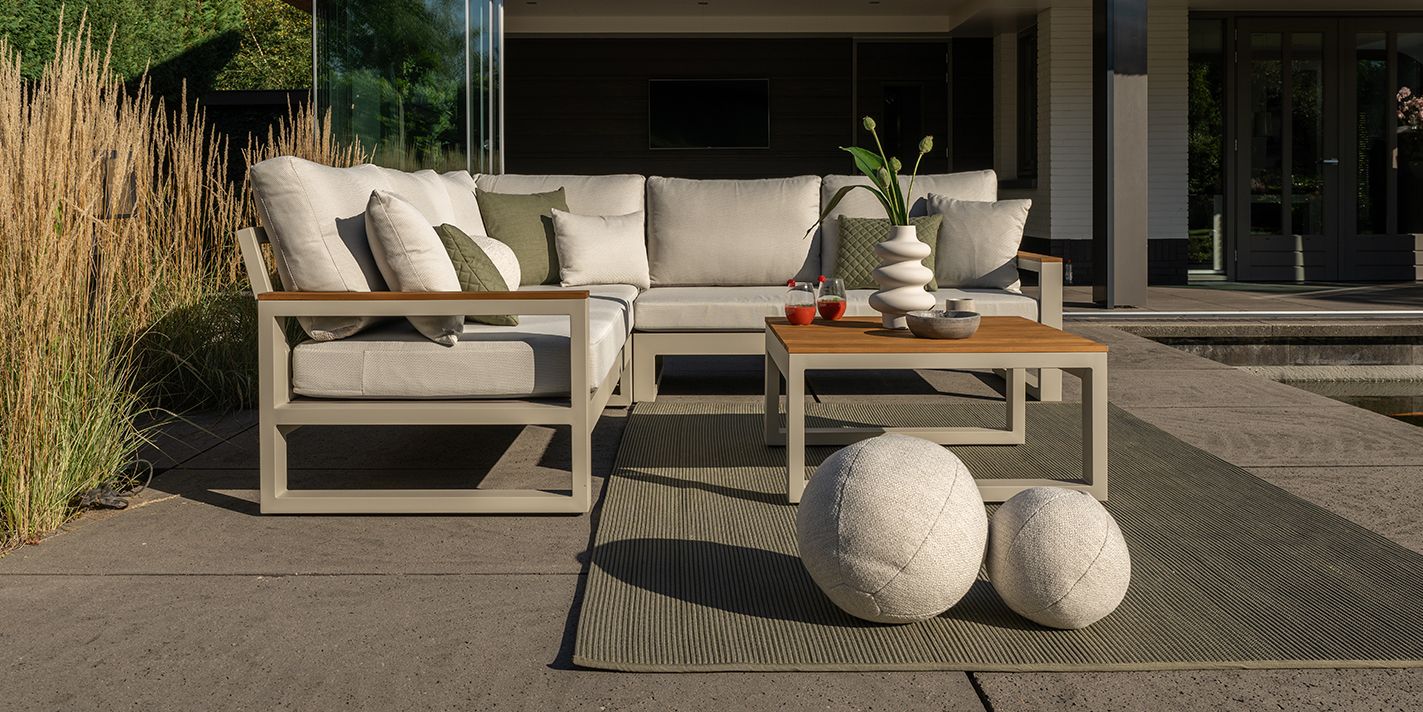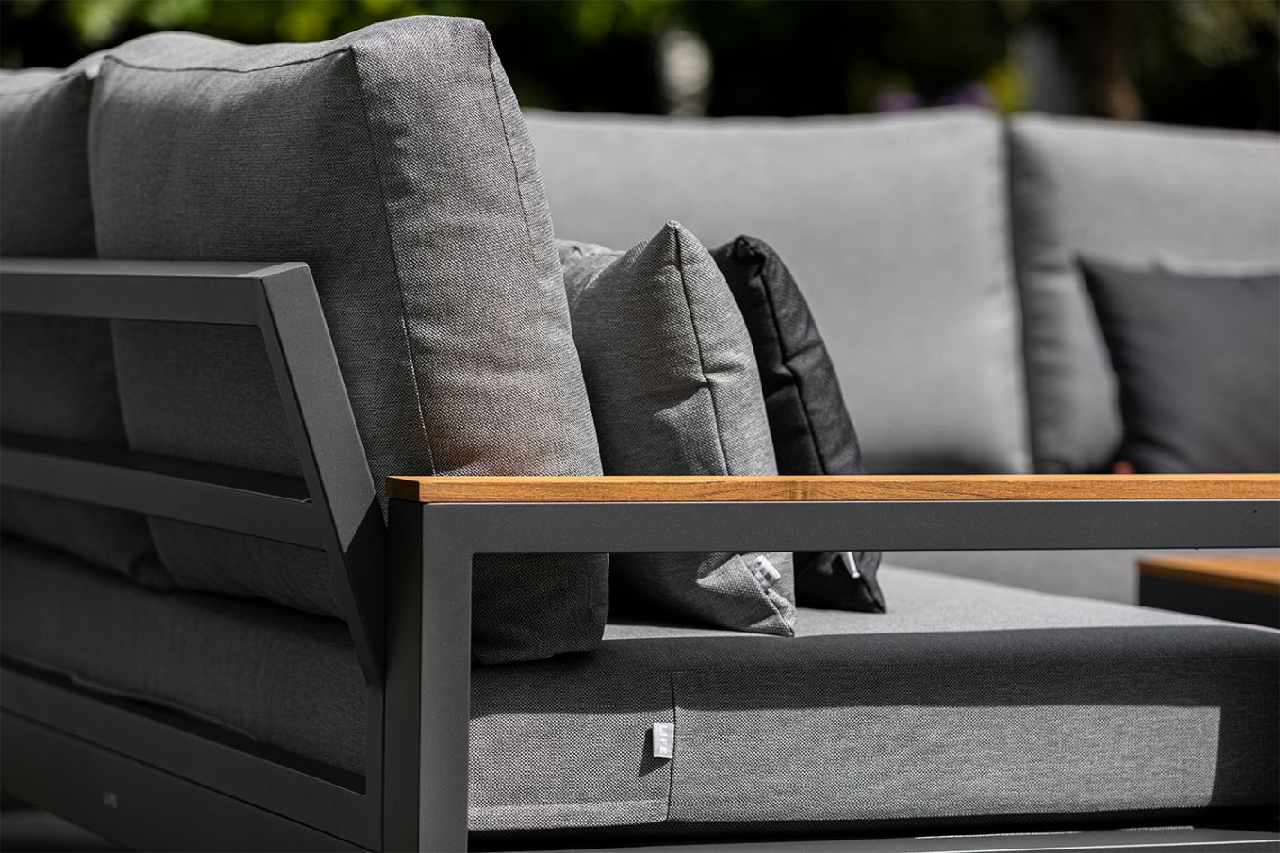 The teak slats on the armrests and tables not only give the set a warm appearance but also provide extra comfort. The aluminum frame is available in three stylish colors: lava, beige, or white, while the teak side tables you can choose are finished in a robust color. This combination of materials and colors creates an elegant and durable lounge set that perfectly complements various outdoor styles. Because the Soho is available in all our frame colors, it will always complement your garden style.