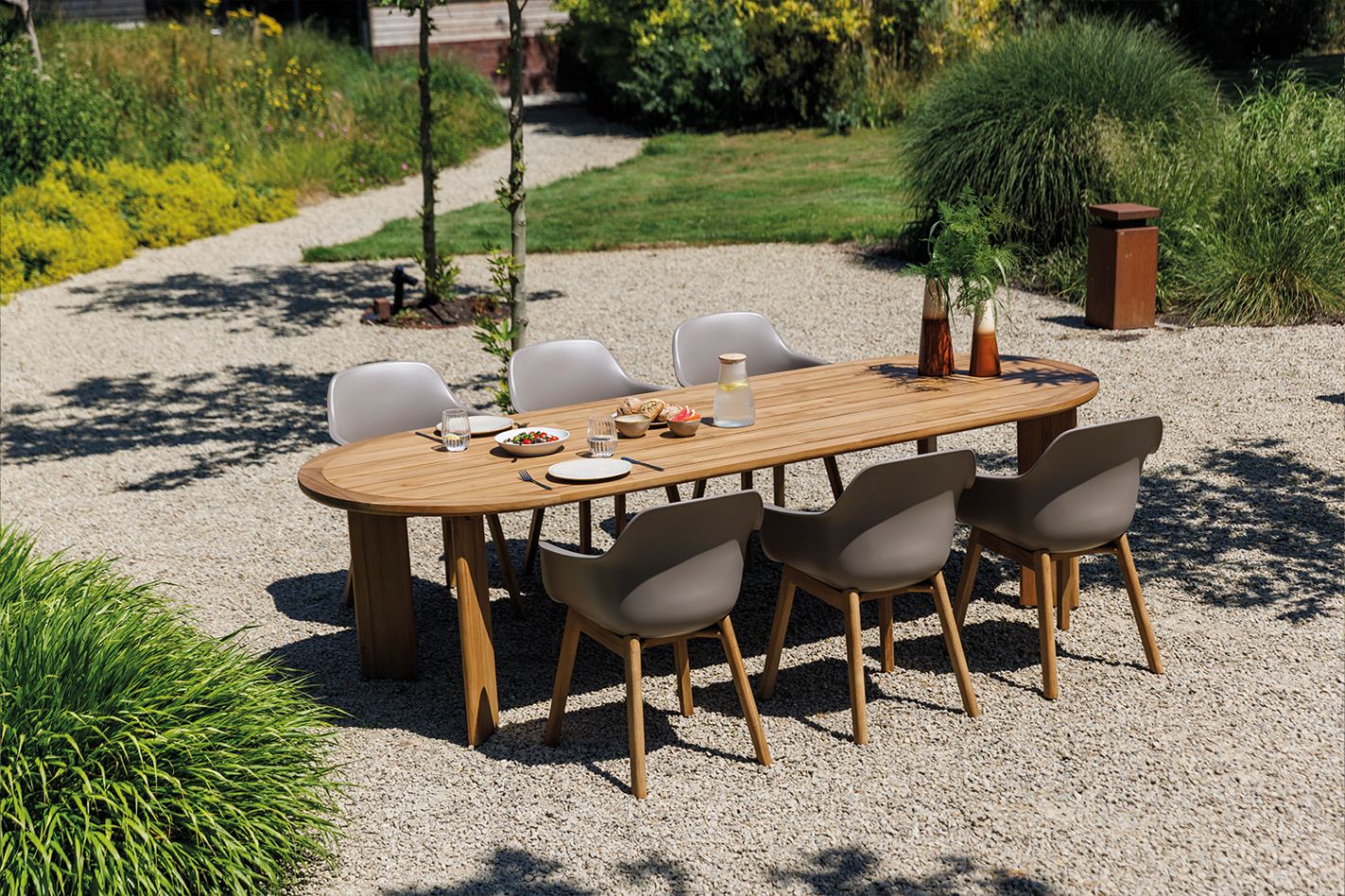 The Andalucia garden table brings a peaceful, Mediterranean feel to your outdoor space. The soft lines and generous top create a friendly, open atmosphere that invites you to dine together outdoors or simply relax. Thanks to its balanced design, the table fits effortlessly on both a spacious patio and a more compact outdoor setting.