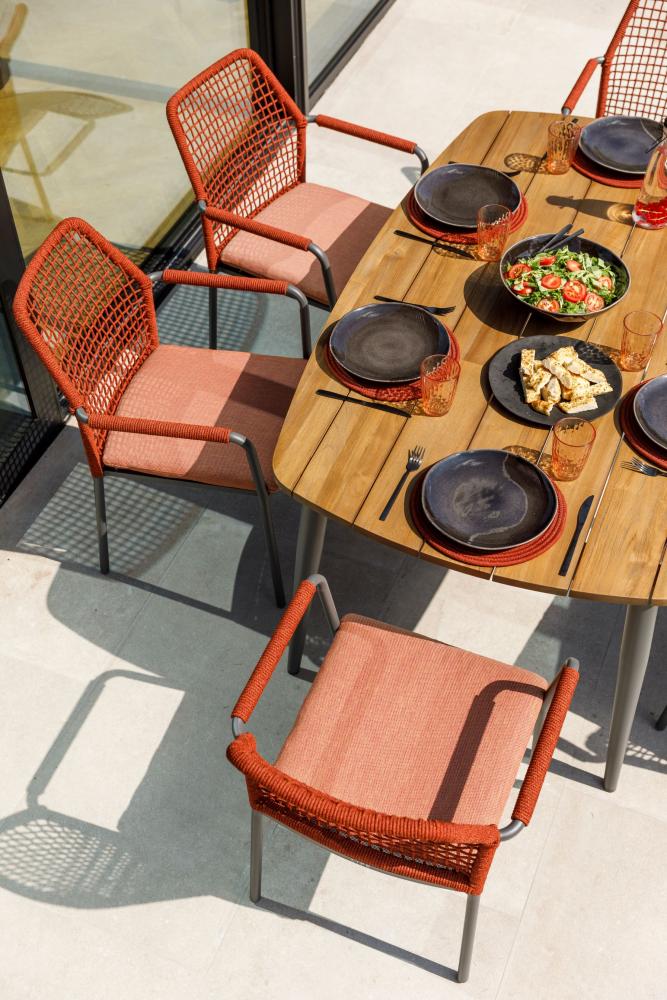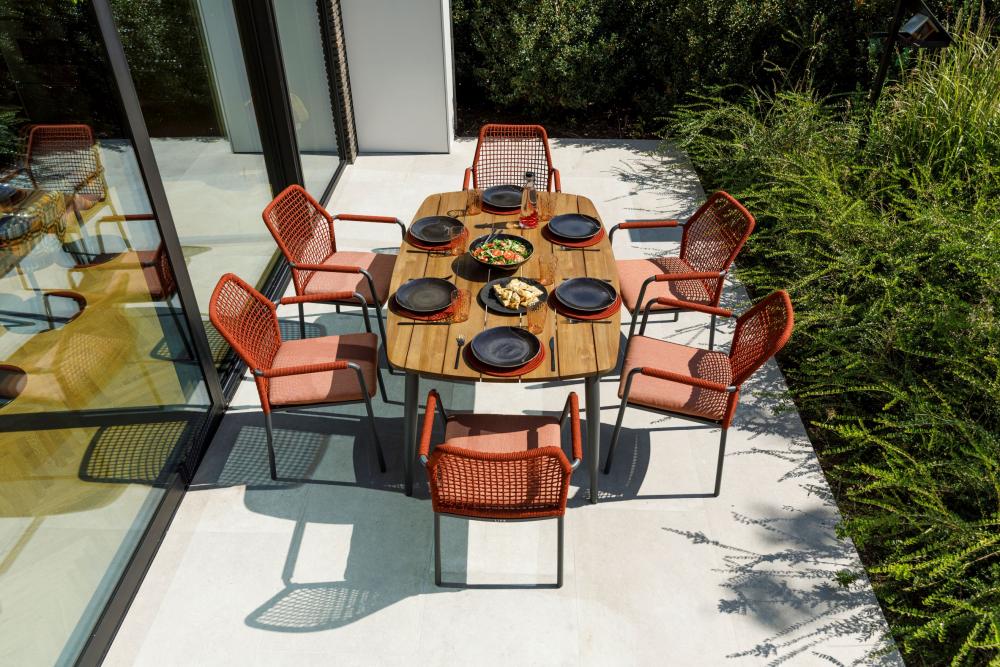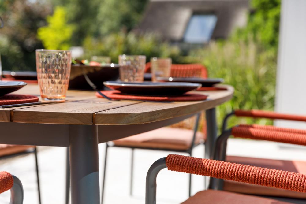 Whether dining, having drinks or relaxing outdoors, the Tondo table offers a combination of style and functionality. The rounded corners make it extra comfortable to sit at the head of the table. The teak adds a natural and timeless charm to your outdoor environment. With high-quality materials and a contemporary design, the Tondo dining table is a perfect addition to your outdoor living space. Upgrade your patio with this beautiful dining table and enjoy the best moments outdoors together!