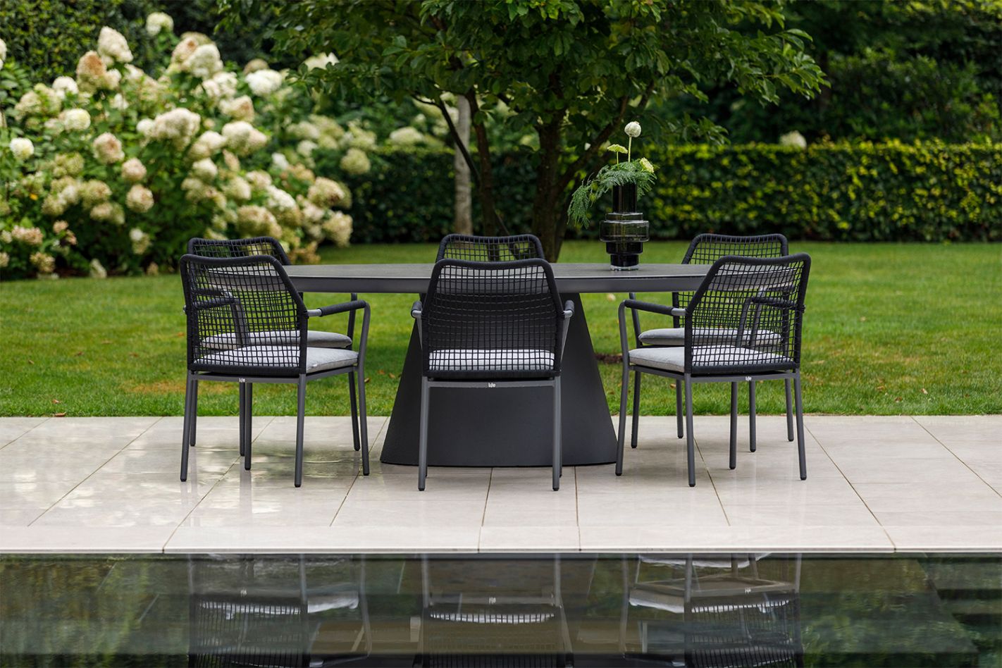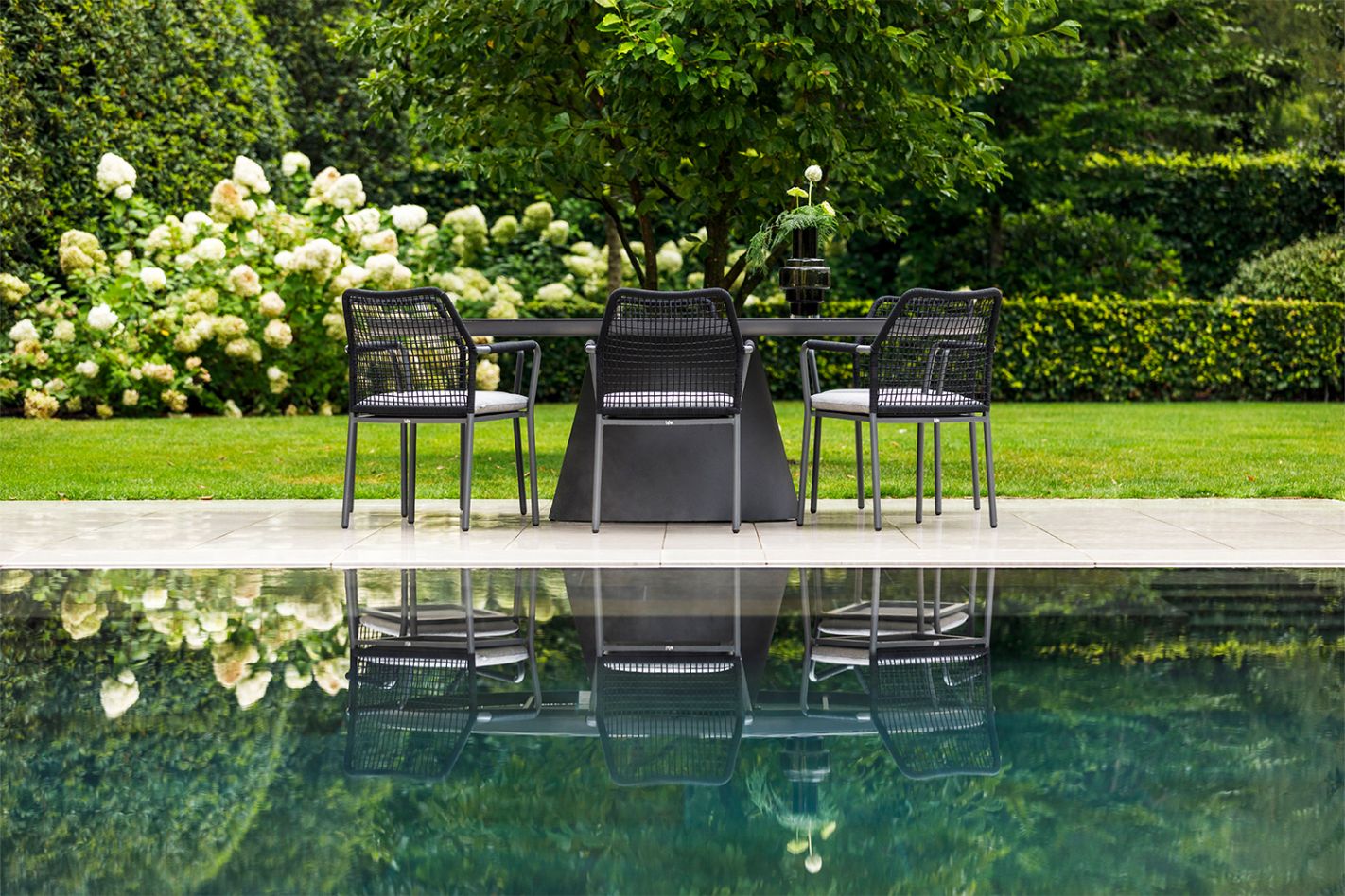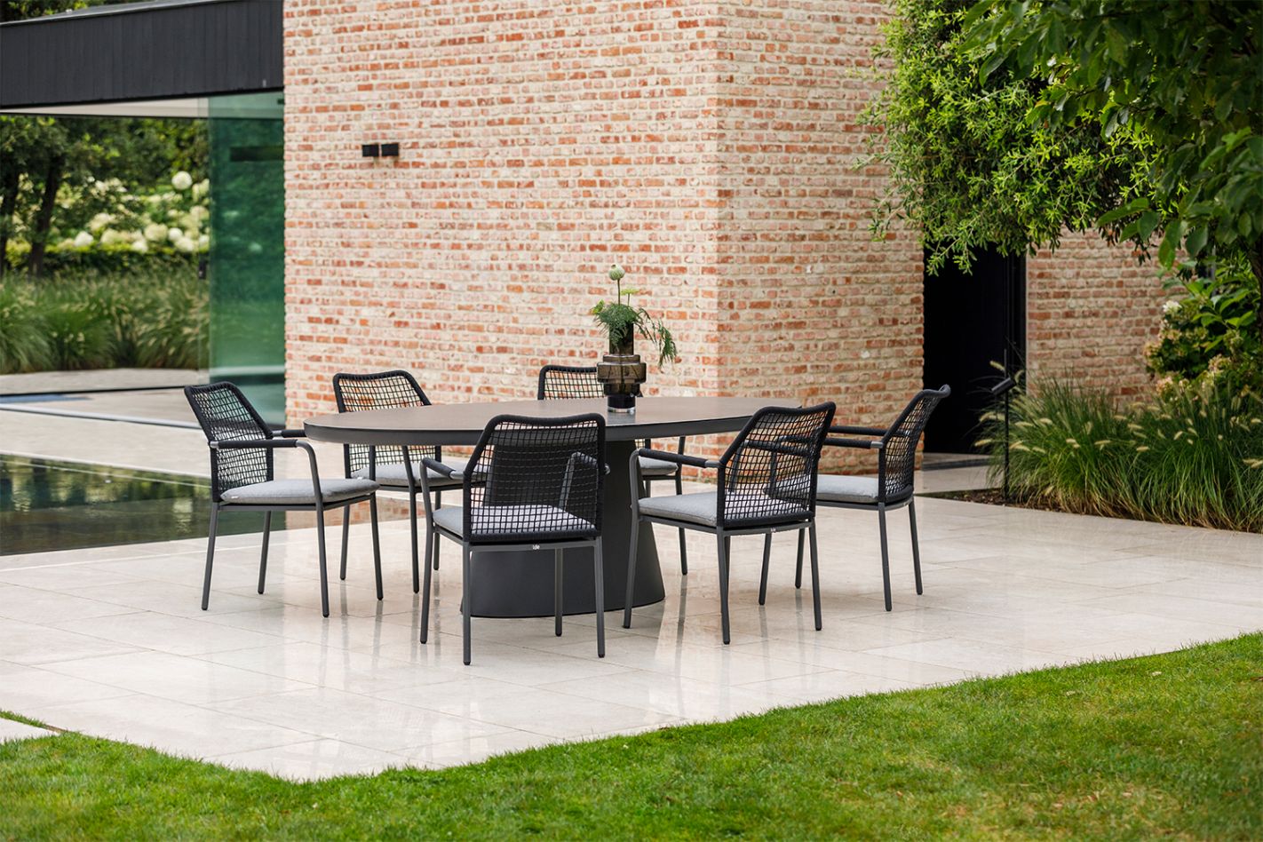 Aluminum is easy to clean and reliable throughout the seasons. Ceramic retains its appearance with minimal maintenance, while teak naturally develops its own character as it ages outdoors. This way, the Algarve remains a familiar place in your outdoor life.