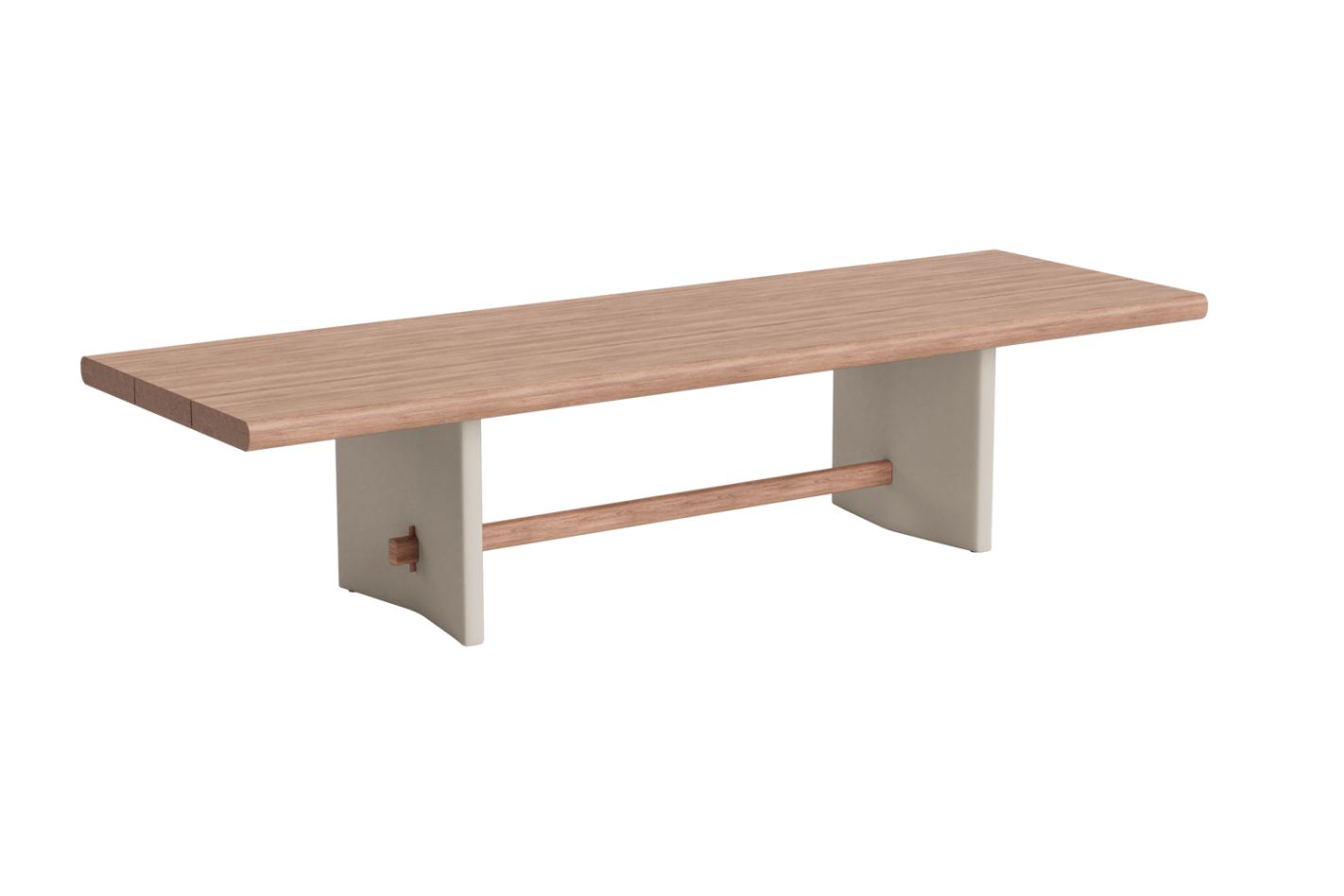 The Fitz Roy garden table is a beautiful addition to the collection, bringing a distinctive, characterful design to outdoor spaces. Inspired by the latest trends, this table features closed column legs with a subtle bend. This not only provides strength and stability but also gives the table an elegant and refined look that is both modern and timeless. A striking feature of the Fitz Roy garden table is the wood joint that connects the legs. This detail remains visible and enhances the table's character. The beam, which follows the same design as the tabletop, seamlessly integrates into the overall design, creating a harmonious overall look.