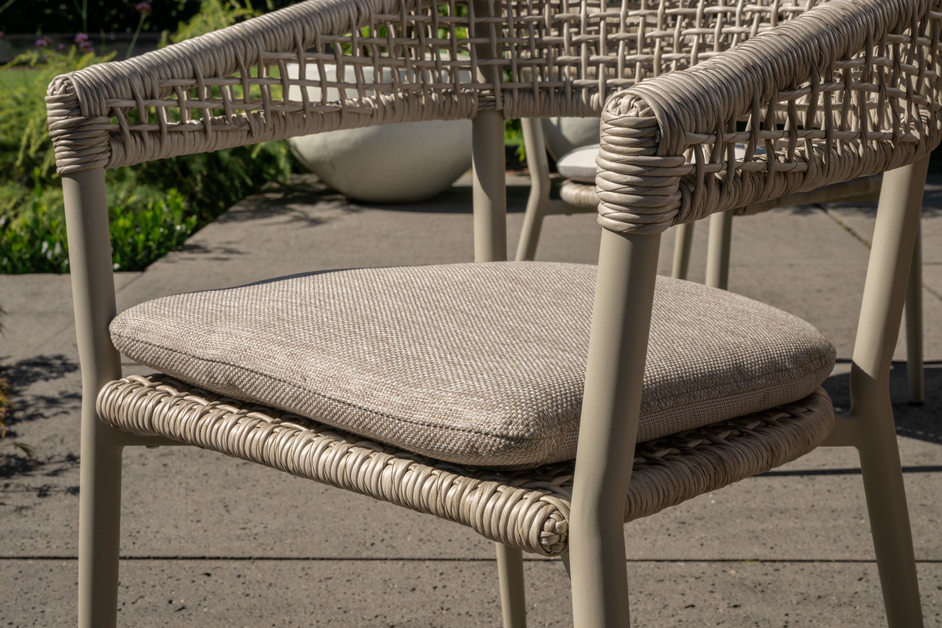 Bring style and comfort to your garden with our twisted loom chairs. Twisted loom consists of a strong plastic thread with a hollow interior and is woven entirely by hand. It is strong, easy to maintain and also weather and UV resistant. The ultimate combination between quality and comfort.