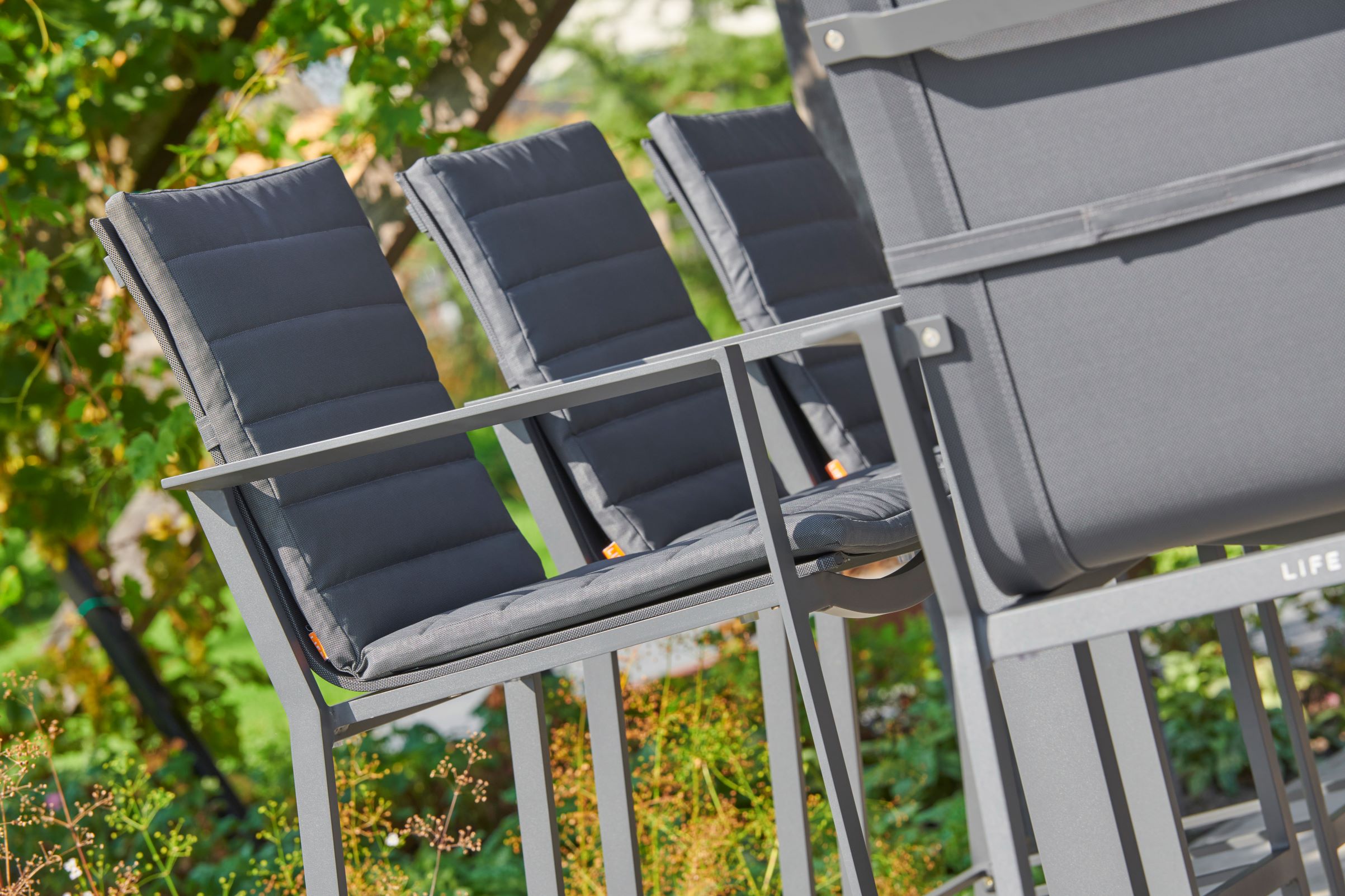 Enjoying drinks with friends or family in comfort: that’s possible with the Primavera bar chair. Thanks to the All Weather material of the seat, this bar chair is weatherproof and easy to maintain. Maximum enjoyment guaranteed. Thanks to the armrests, the Primavera barstool offers optimal comfort with your bar set.