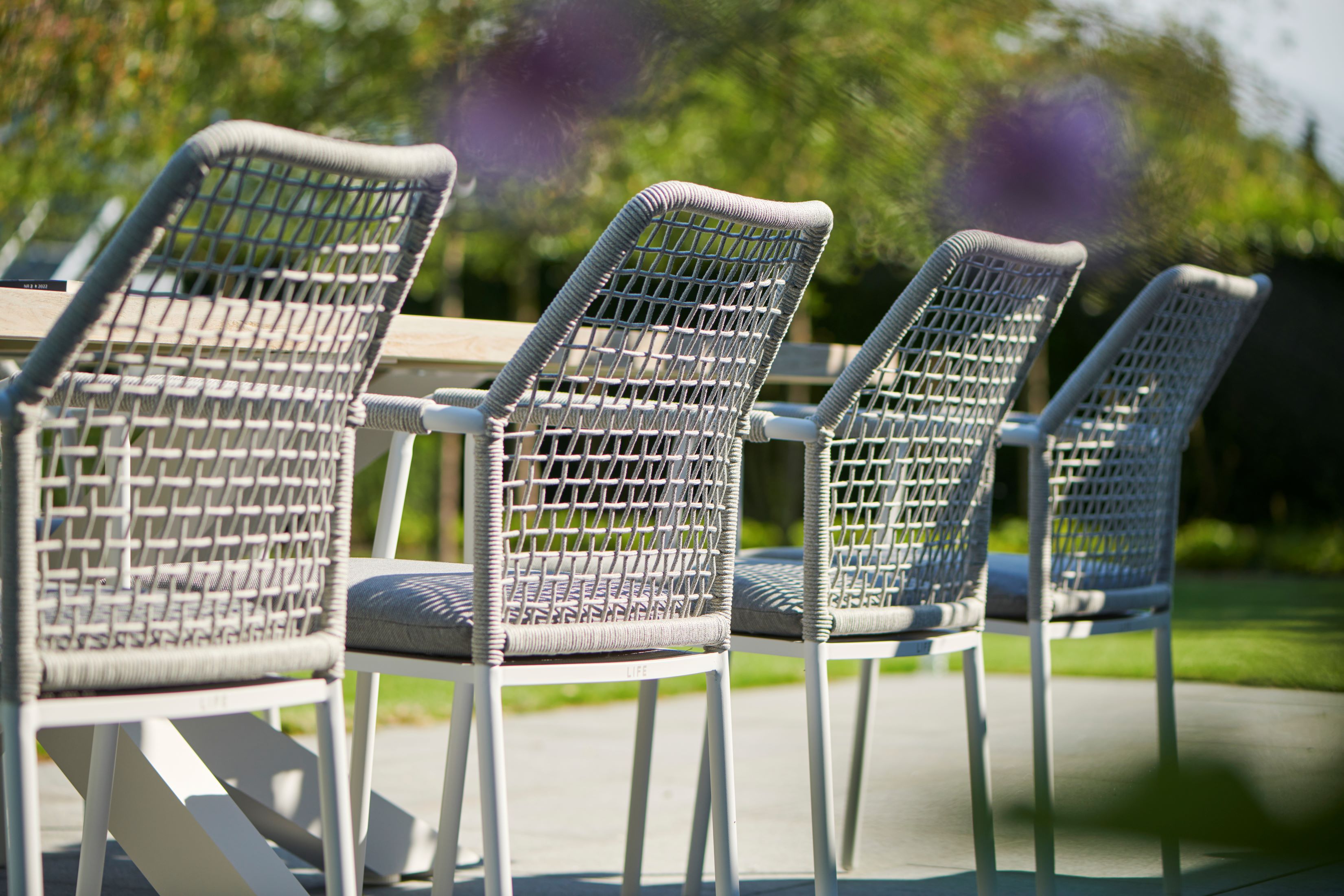 The RuCore material of the Vienna chair is a new addition to our collection for the 2025 season. This material is a combination of rope and a rubber core, which results in the material drying much faster after rain. That’s why this material is ideal for outdoor usage.