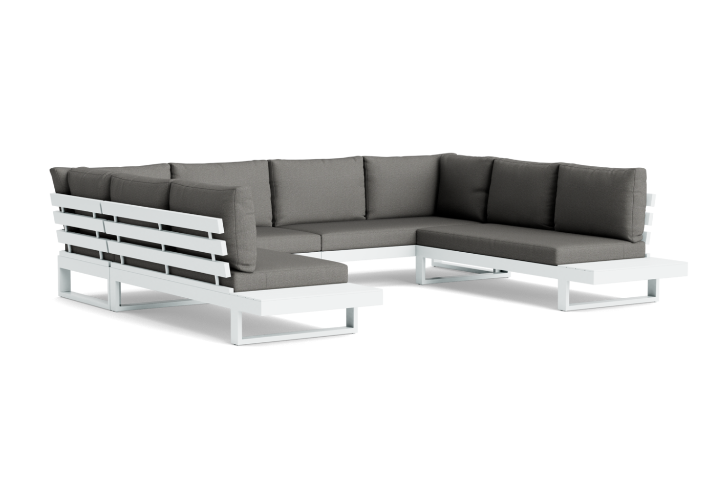 The Ibiza Lounge offers plenty of flexibility in configurations, from a compact balcony set to a spacious lounge set suitable for 3 to 8 people. Its flexible configuration allows this set to fit effortlessly into any outdoor space and garden style. Furthermore, the Ibiza Lounge is available in two frame colors, white and lava, and with a fixed cushion color in mist gray. This makes the set not only stylish but also a budget-friendly choice.