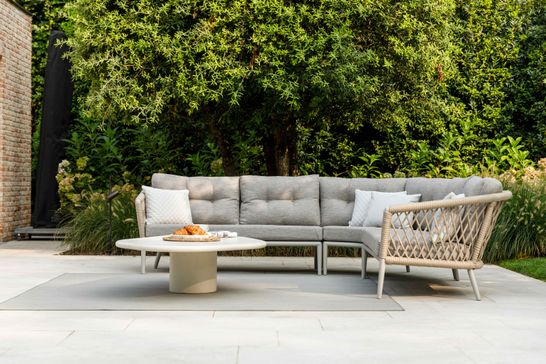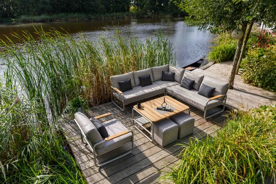 Country-style garden furniture is designed with comfort and cosiness in mind. Think of a sturdy teak dining table with comfortable chairs in wicker or aluminium with wooden accents. A country lounge set – such as a spacious corner sofa with soft cushions – is perfect for lazy afternoons and long summer evenings with family or friends. Organic shapes and rounded edges further enhance the friendly, welcoming character of this style.