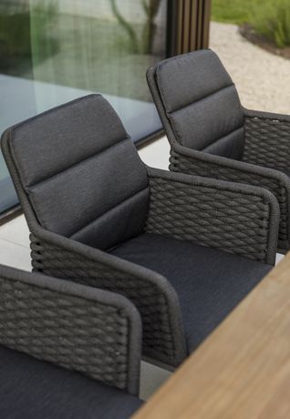 Wicker is making a comeback, but with a modern twist. This year, we see finely woven designs made from weather-resistant synthetic fibers. These combine a luxurious look with easy maintenance. Wicker adds transparency and elegance to your outdoor furniture, especially when paired with teak or aluminum.
