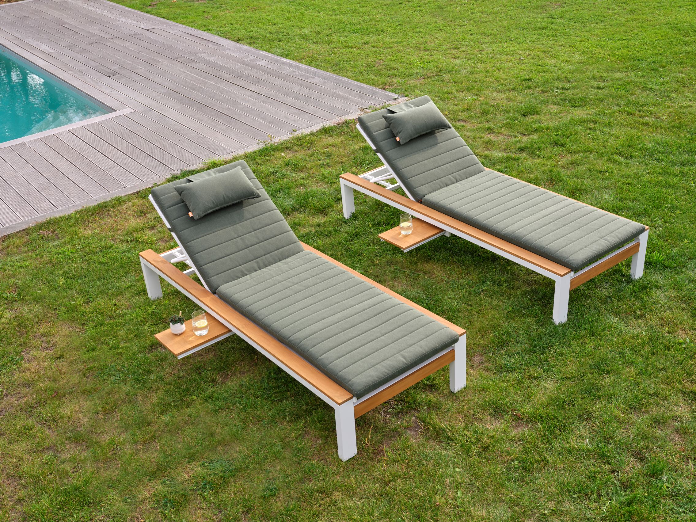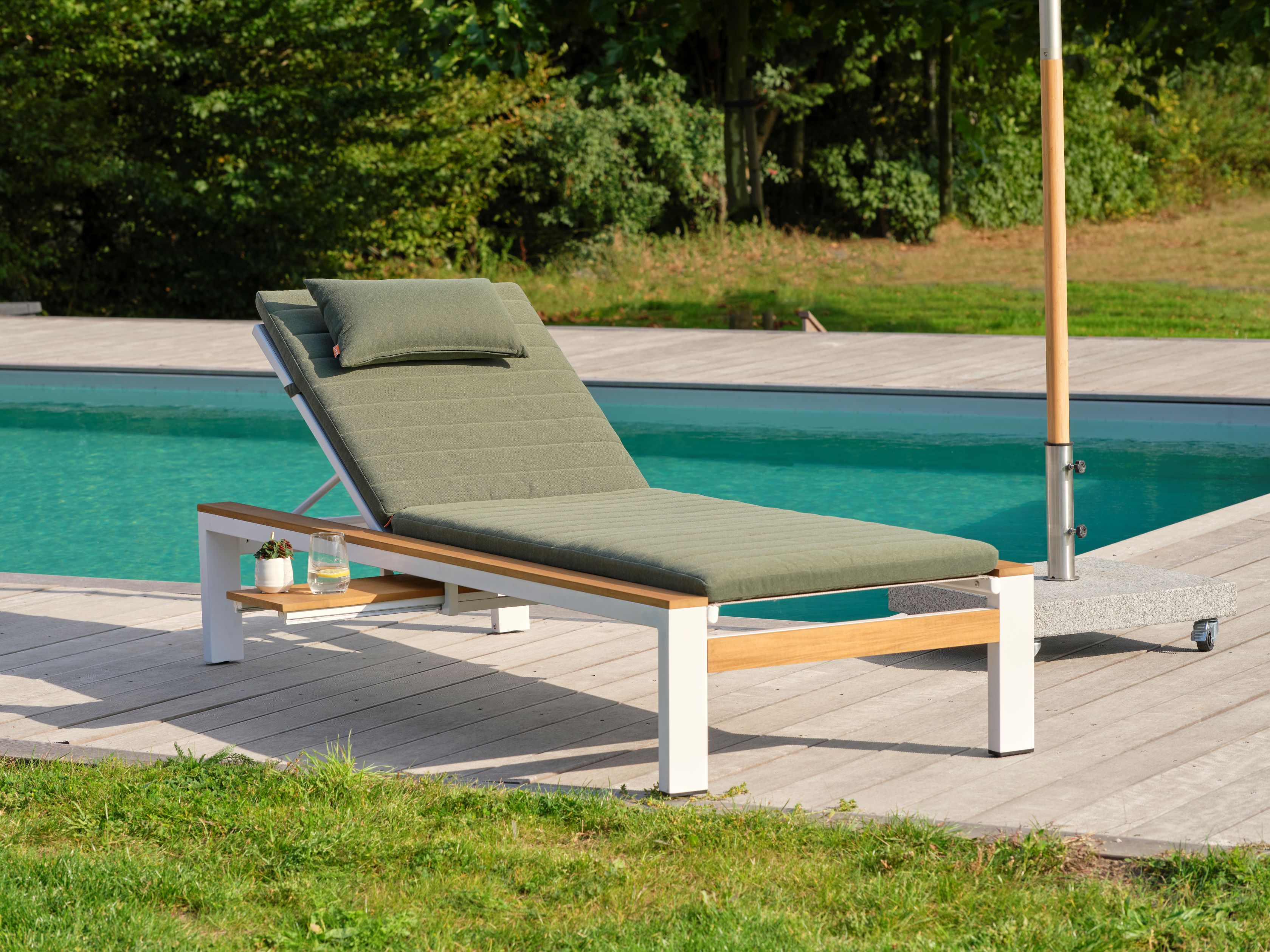 Transform your outdoor space and enjoy relaxed moments in style with the Soho lounger. Embrace comfort and style with the Soho lounger. The lightweight, rust-proof aluminium frame requires minimal maintenance. The seating, made of high-quality All Weather material, is suitable for all seasons, perfect beside the pool. Adjustable for your ideal posture and featuring a handy pull-out table, this sunbed offers unparalleled practical luxury.