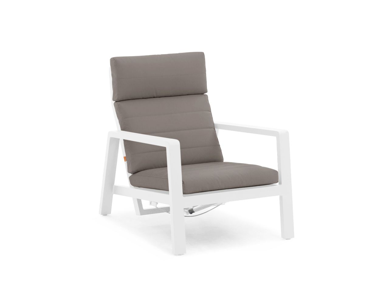 For extra seating comfort, the Laguna lounge chair comes with a Bondi recliner cushion. This thick cushion covers both the seat and backrest, making it easy to store. It is thinner than traditional lounge cushions, but offers excellent support for the neck and head thanks to the high back.