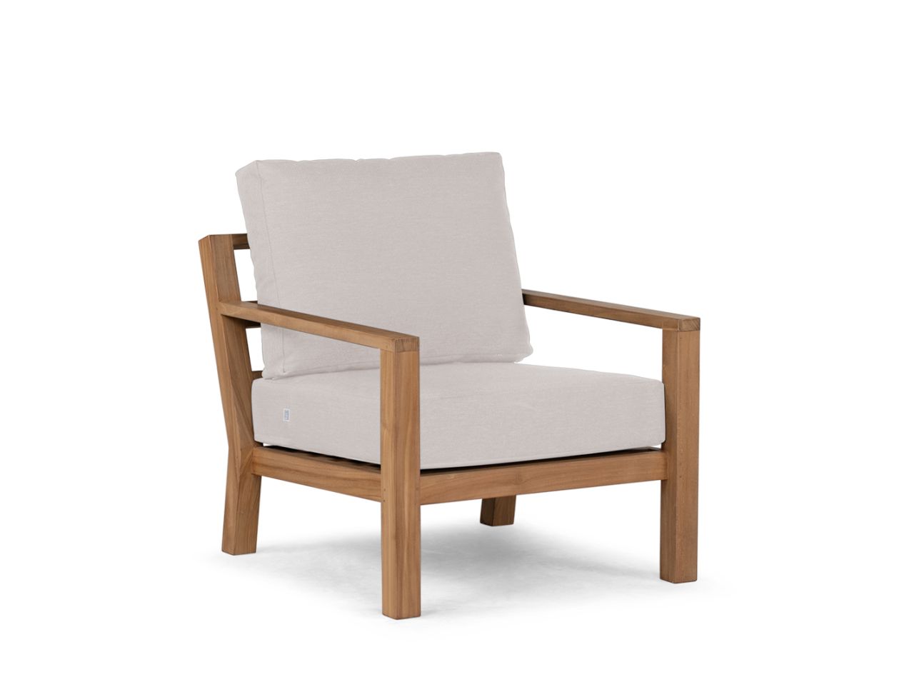 The Timber series includes various pieces of furniture, including benches, tables, and individual lounge elements. Unique to this series is the availability of both high and low armrests, allowing you to fully customize the look of the set. This makes the Timber lounge chair a versatile choice for any outdoor space.