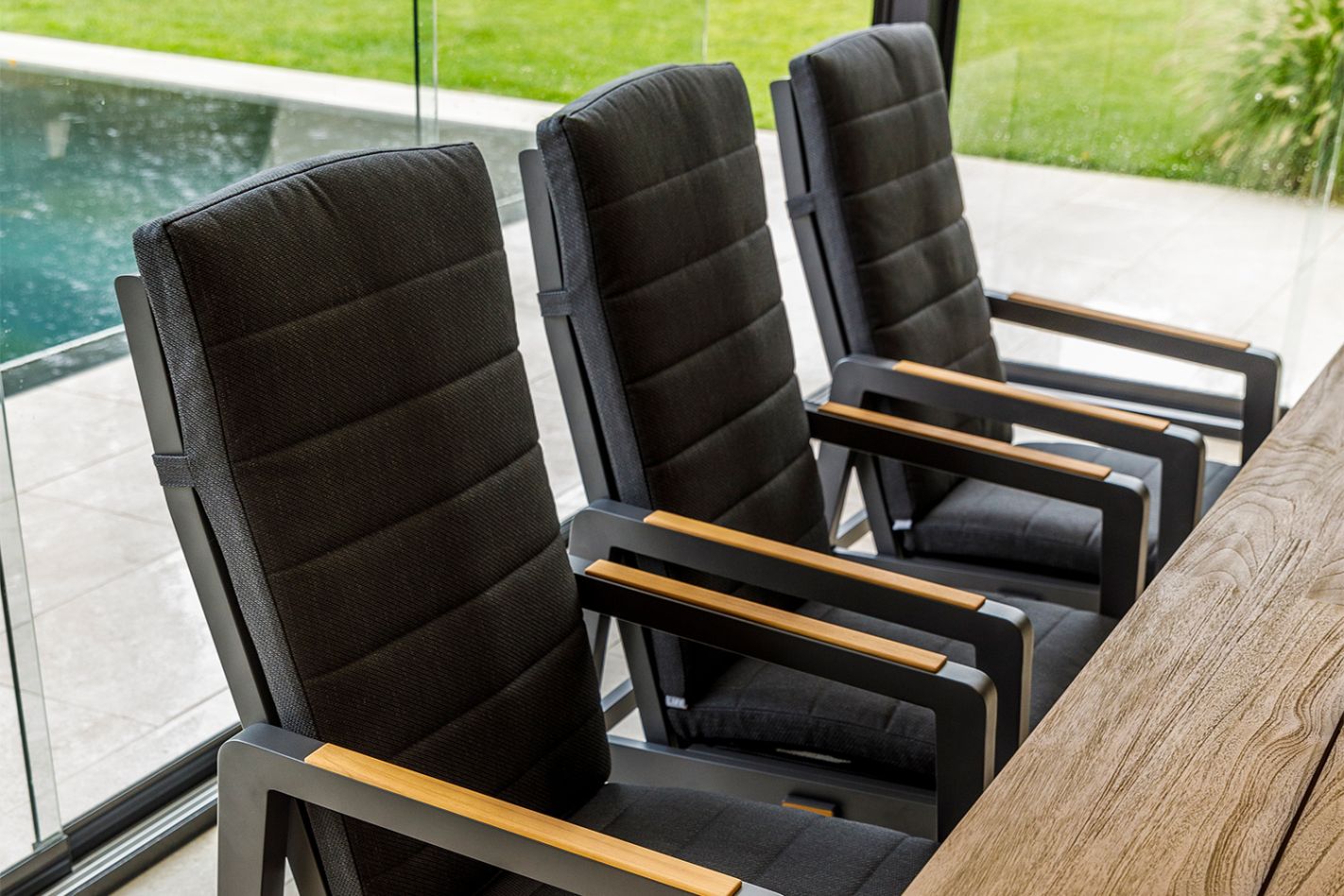 Teak details and ergonomic armrests