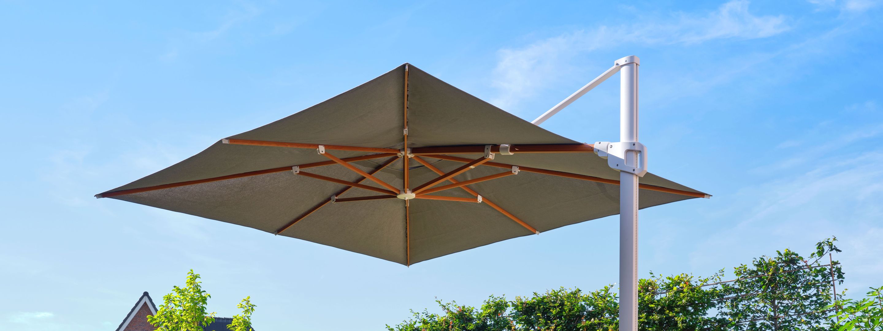 Let op: vierkante parasols zijn door de langere baleinen vaak minder handig om boven een tafel te plaatsen.