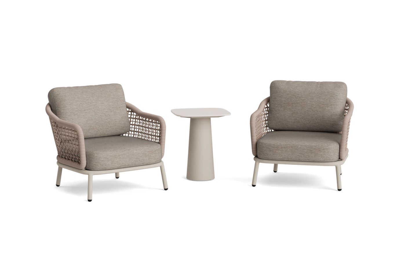 De Barcelona balkonset brengt een elegante, rustige sfeer naar je buitenplek. De set bestaat uit twee loungestoelen met een bijzettafel ertussen en combineert zorgvuldig vormgegeven details met comfortabel loungen. Het vierkante vlechtwerk, waarin afwisselend één en twee draden zijn verwerkt, zorgt voor een subtiel reliëf en een verfijnde uitstraling. In combinatie met de organische vormen en de ondersteunende zithouding voelt deze set direct uitnodigend aan. De Barcelona sluit perfect aan bij onze Organic Signature, waarin balans en tijdloos comfort centraal staan.