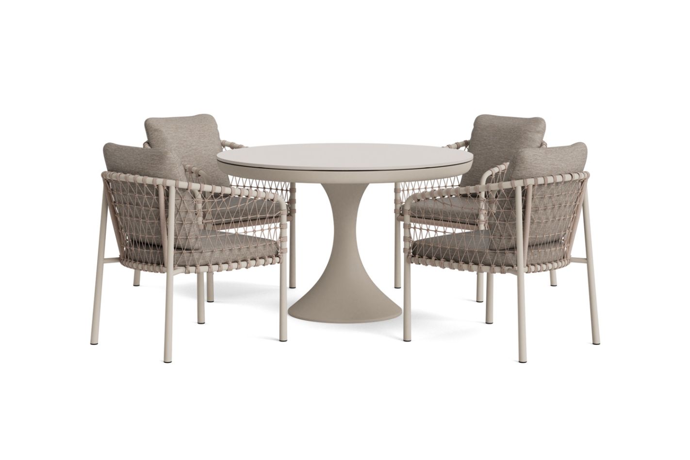 De Como tuinset brengt een verfijnde, rustige uitstraling naar je buitenruimte en combineert elegant design met praktisch comfort. De ronde tafel vormt het natuurlijke middelpunt van de set en nodigt uit tot samenkomen. Dankzij de centrale poot zit iedereen vrij rondom de tafel, zonder hinder van tafelpoten. Dat maakt de Como ideaal voor lange diners en ontspannen momenten buiten.