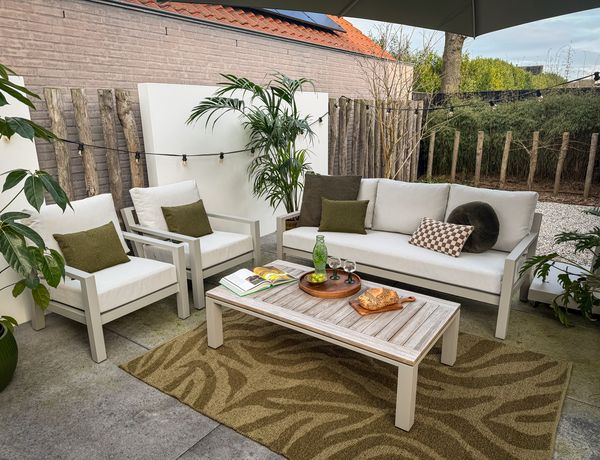 VTWonen Timber loungeset beige in de tuin van Marco en Bert