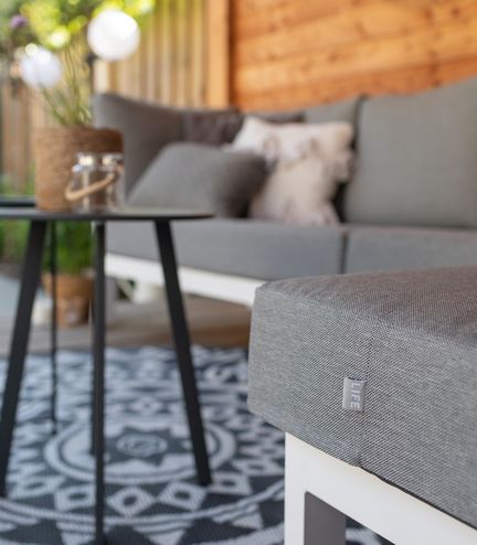 in wit aluminium met mistgrijze Soltex kussens