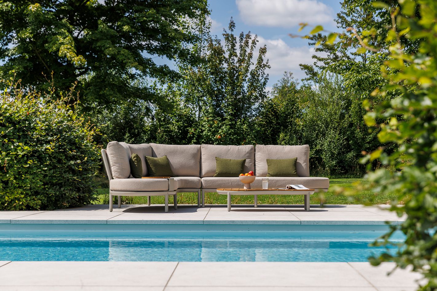 All-weather Comforma is onze meest zachte en gladde stof. Deze kussens voelen als een binnenkussen en komen prachtig tot hun recht onder een overkapping.