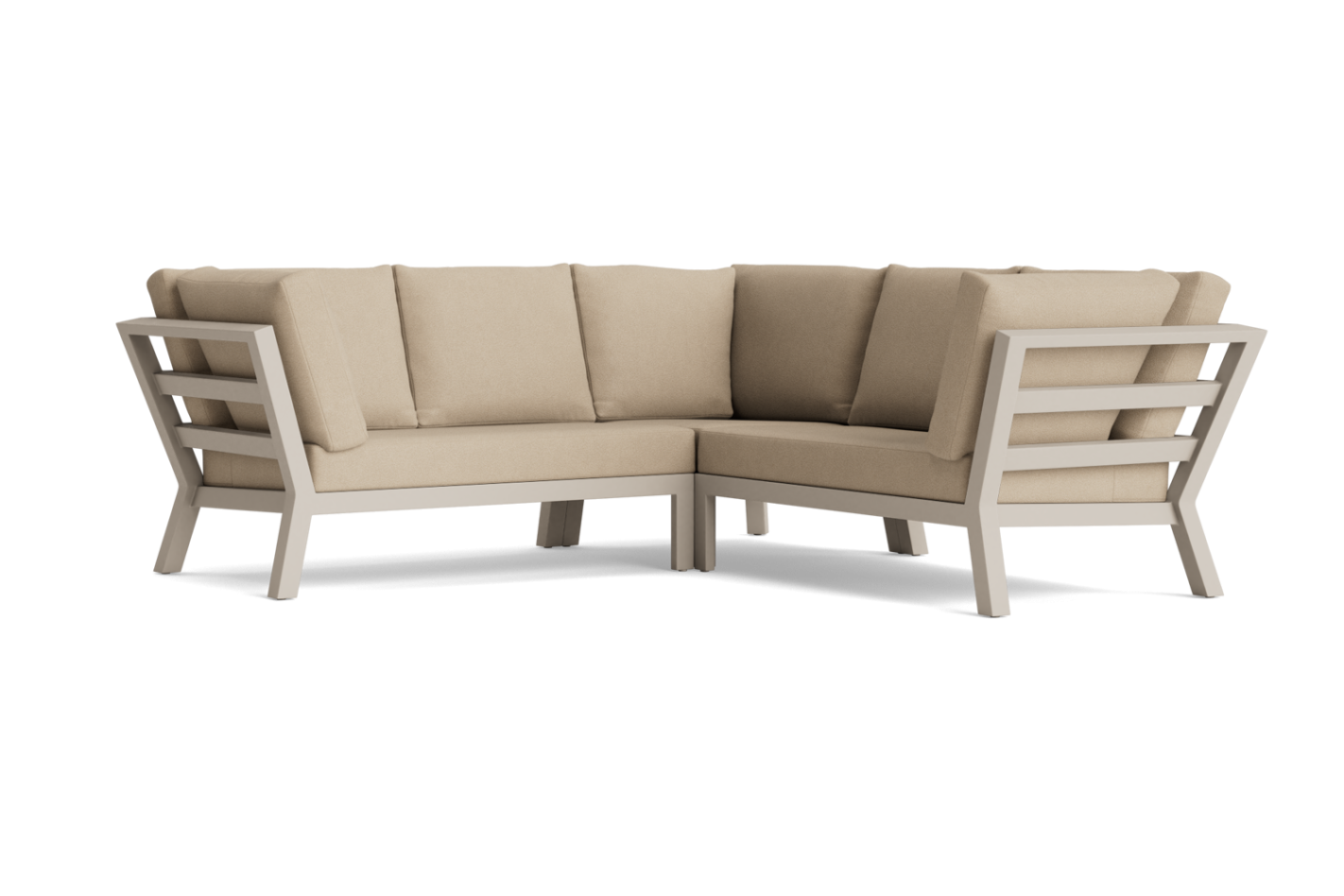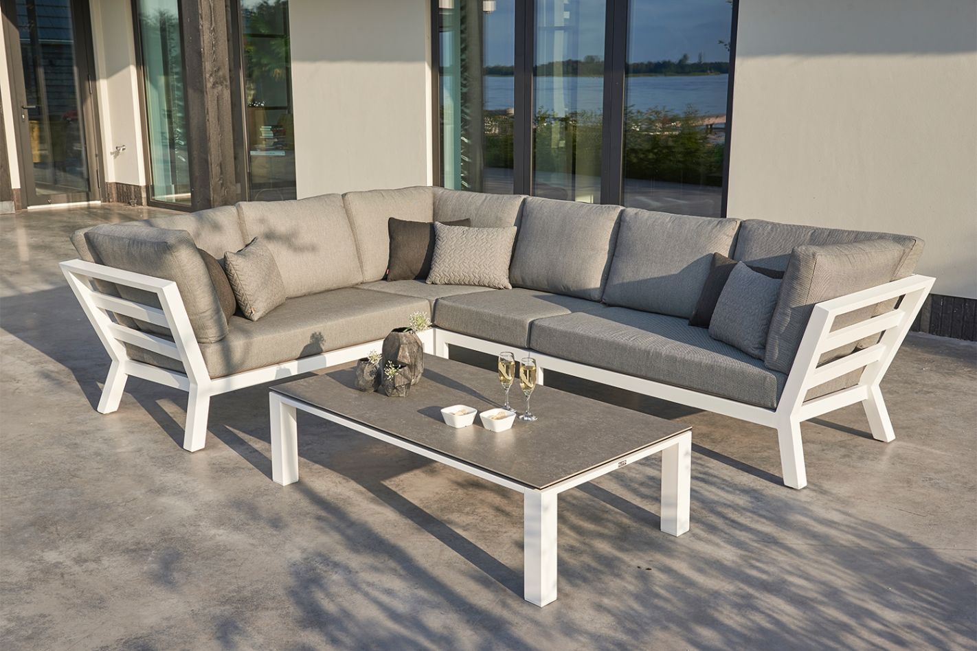 Strakke, moderne loungeset met actieve, comfortabele zit. Aluminium frame, meeverende zitting en modulaire opstellingen.