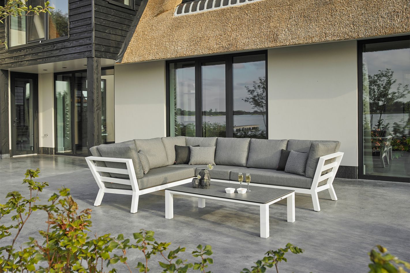 De Timber loungeset brengt een moderne, strakke uitstraling naar je buitenruimte. De vormgeving voelt licht en overzichtelijk aan, waardoor de set moeiteloos past op zowel ruime terrassen als kleinere zithoeken. De zithouding is iets actiever dan bij diepe loungesets, ideaal voor wie graag buiten ontspant maar toch prettig rechtop wil zitten tijdens gesprekken of bij een kop koffie.