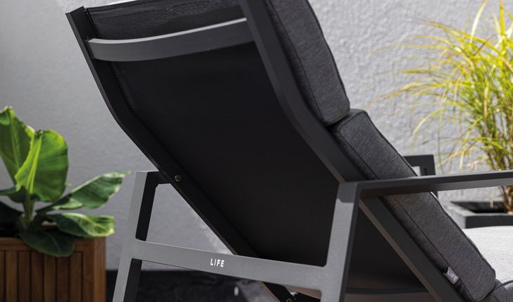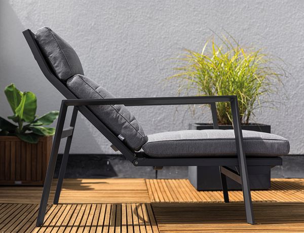 De Bondi relaxstoel is beschikbaar als 1- of 2-persoons uitvoering en heeft een hoge rug voor optimale ondersteuning. Het slanke aluminium frame met rechte lijnen is verkrijgbaar in lava of wit. Onder het zitkussen zorgt een sling zitting van textileen voor subtiele vering en extra comfort, ook bij langdurig gebruik. De rugleuning is mechanisch verstelbaar in drie verschillende standen. De Bondi biedt de keuze uit wel negen verschillende kussenkleuren.