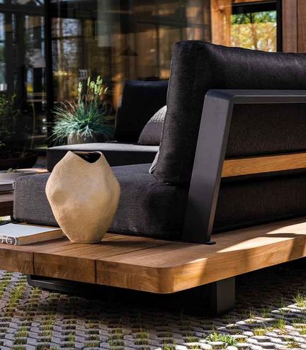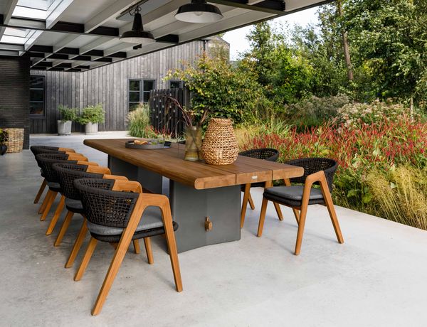 Robuust teakhout en aluminium in een harmonieus ontwerp