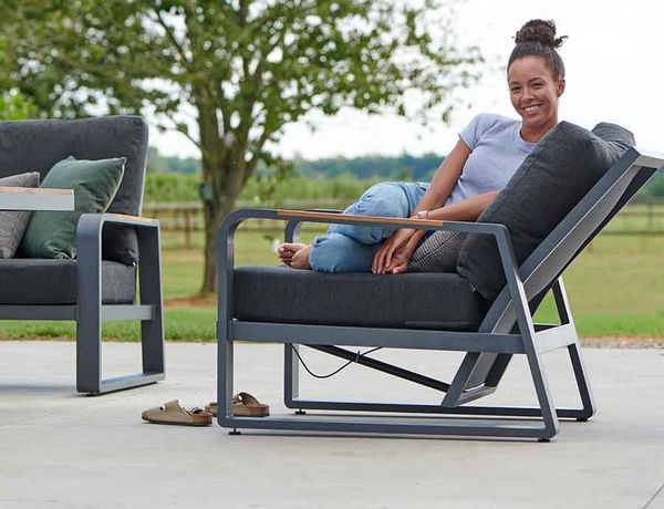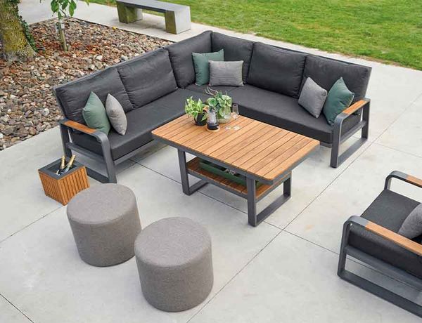 Montana loungeset met lava aluminium frame en teakhouten details