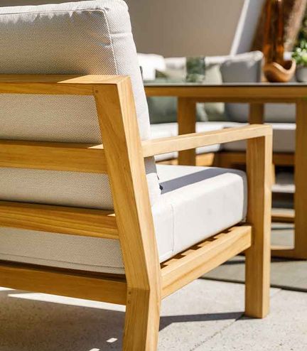De Timber loungeserie heeft een robuust frame van dikwandig aluminium in lava, wit of beige voor duurzaam buitencomfort. Voor wie een natuurlijke uitstraling zoekt, is Timber ook verkrijgbaar in nature: volledig gemaakt van duurzaam teakhout.